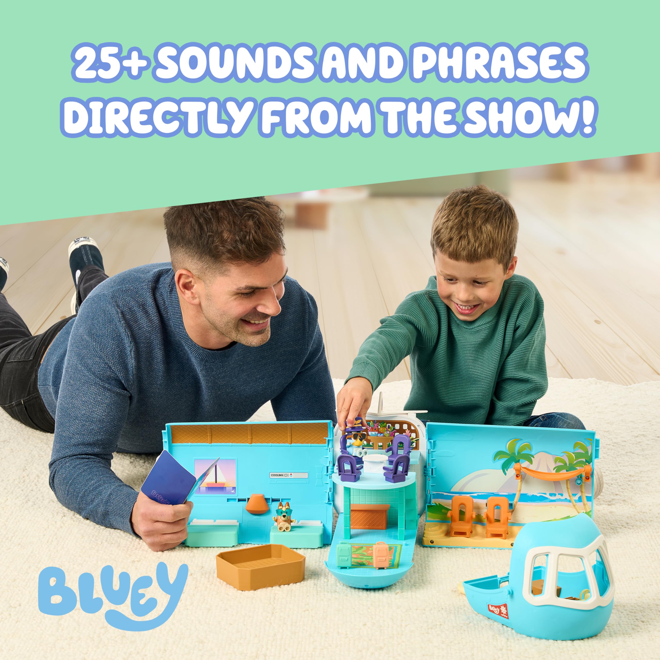 3-in-1 Transforming Fun: The Bluey toddler airplane toy playset magically changes from a toddler toy airplane into a two-level oceanfront resort and a boat, giving kids endless ways to recreate adventures, or explore new stories