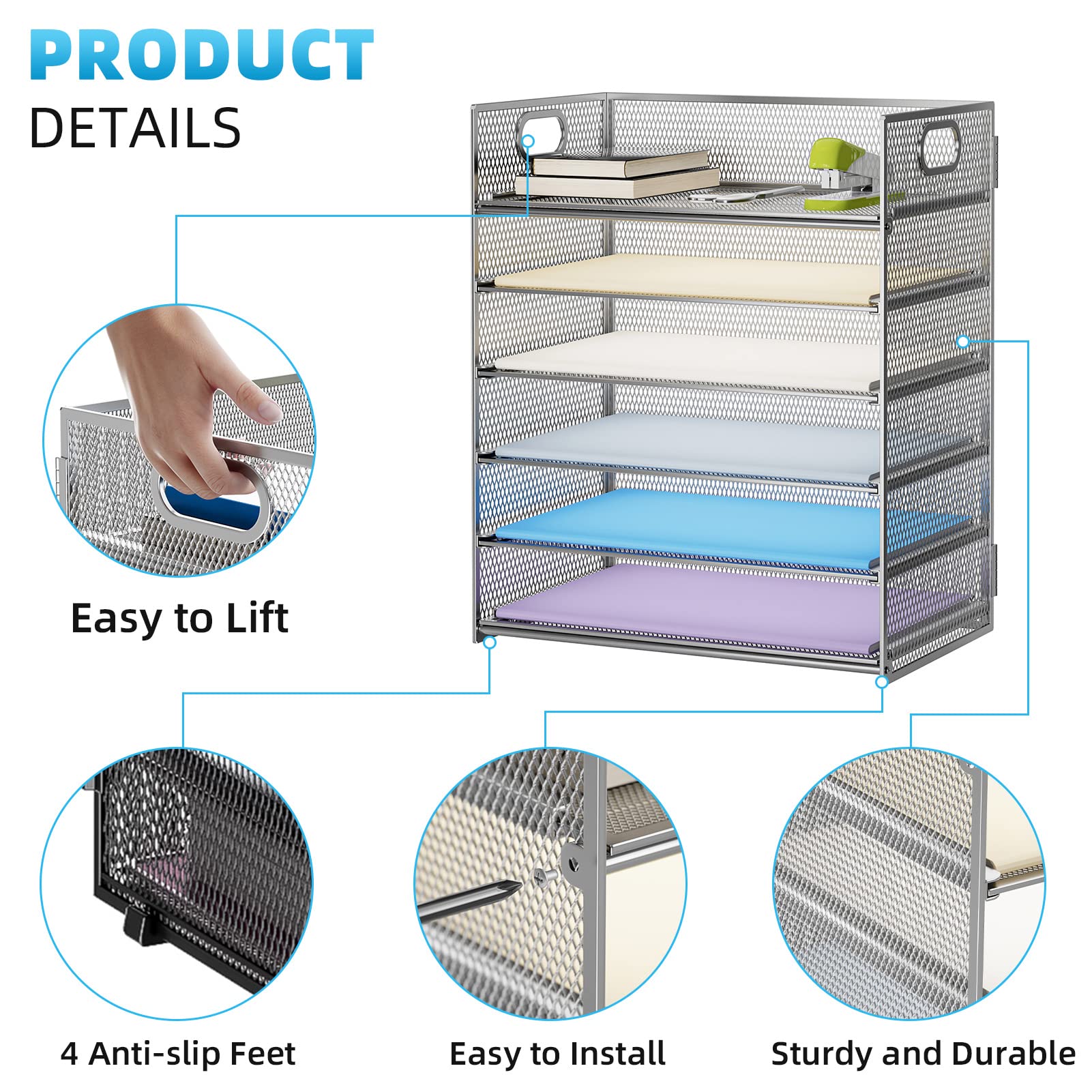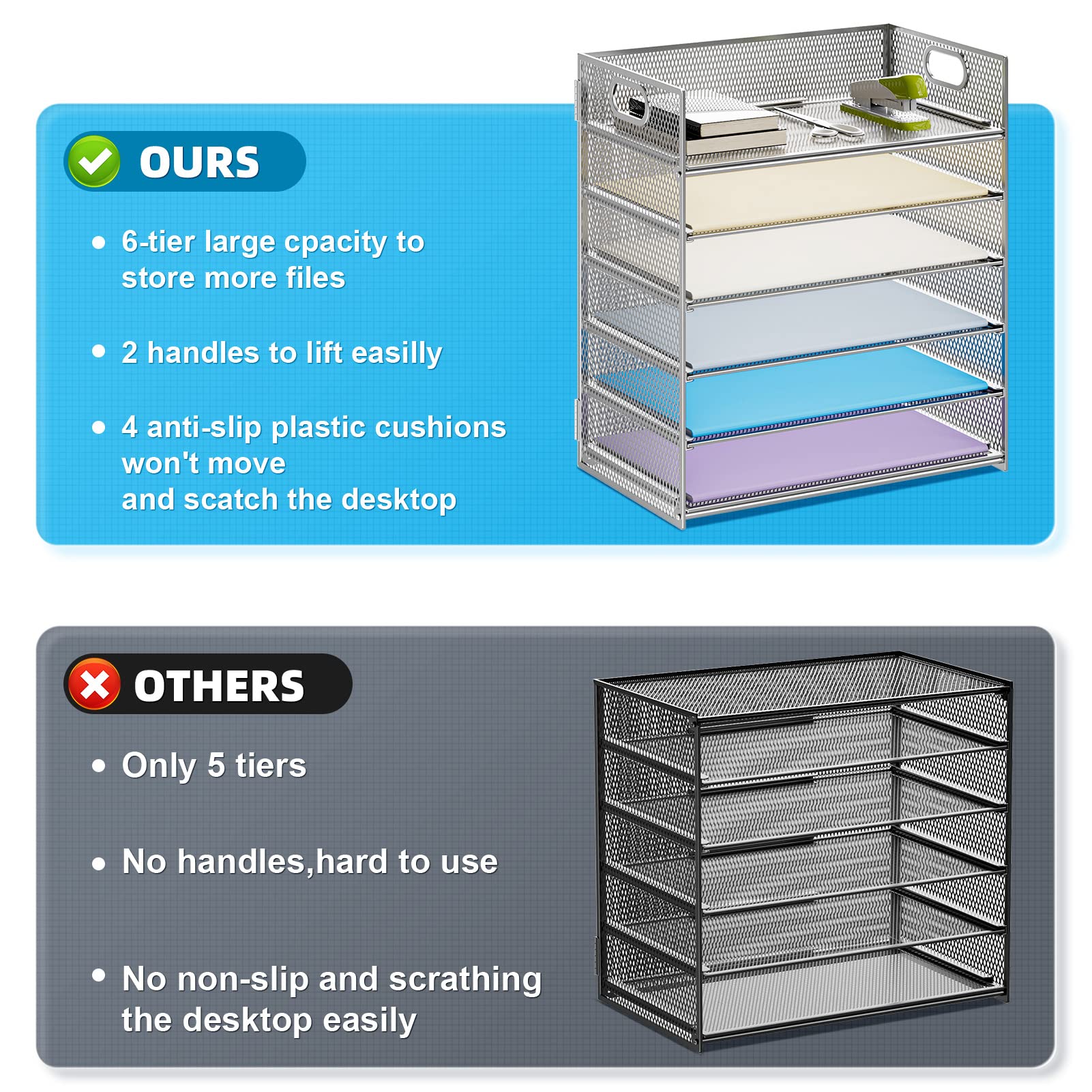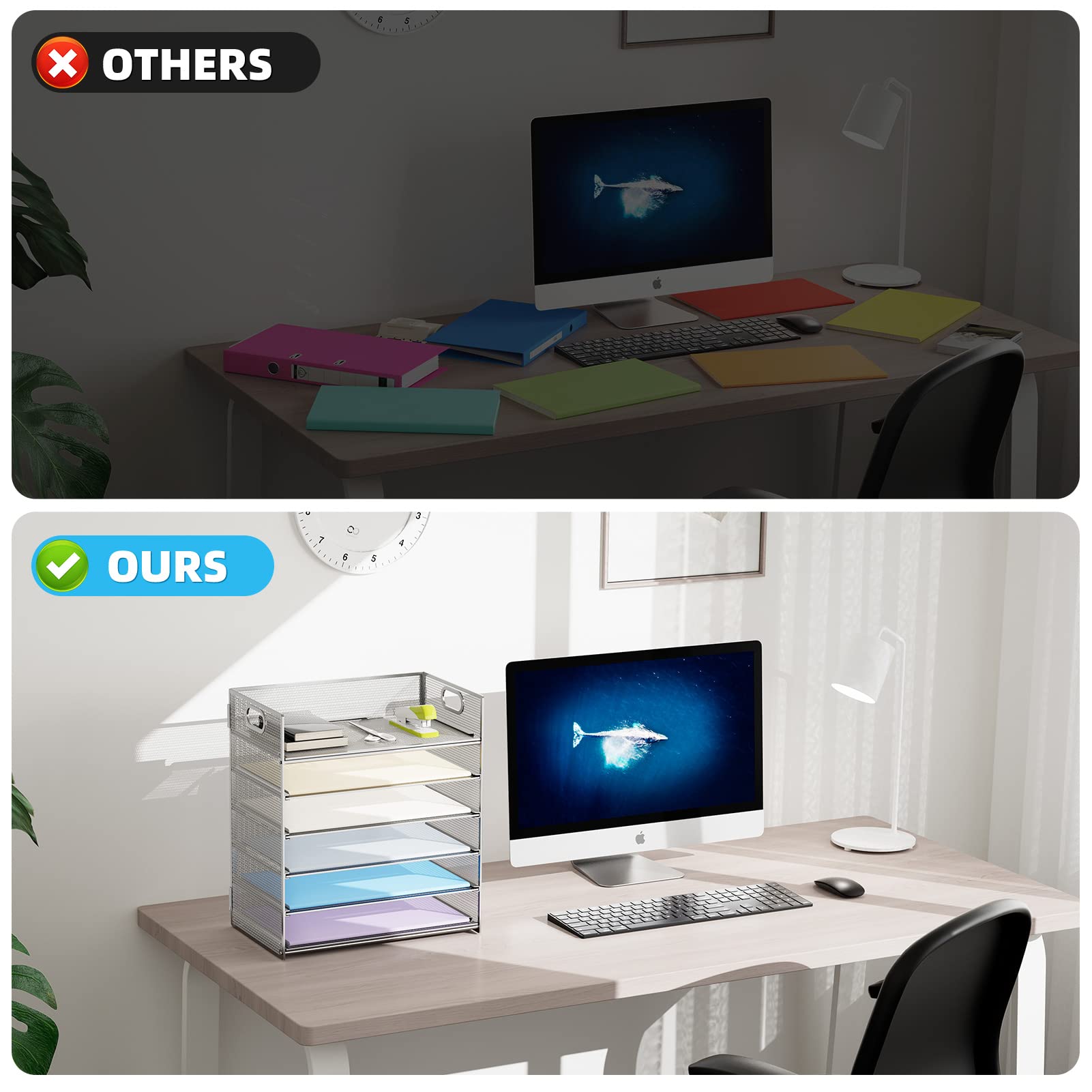 【MULTI-PURPOSE ORGANIZER】6-tier layered design and large capacity make the paper organizer become an ideal choice for managing all kinds of letter-size letters, paper, books, bills, etc. Let you quickly identify the contents of each compartment super easy
