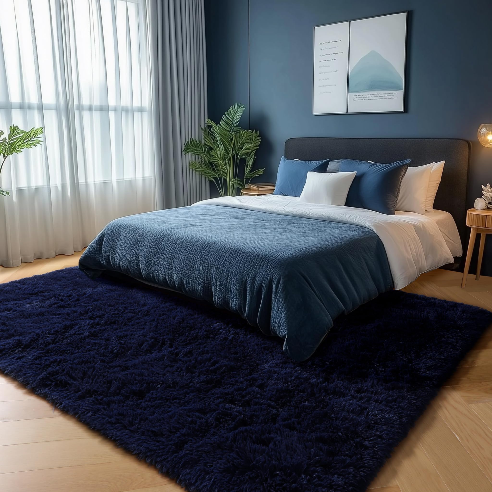【 PAGISOFE Modern Area Rug 】The fluffy rug provides soft and comfortable touch which makes you feel like walking and lying on the clouds.Your pets and kids will love to move around on this carpet, which has a 30% thicker foam pad and a 1.5-inch pile surface. The shag rug are perfect addition to your favorite space.The high pile provides a soft and comfortable touch, whether you are standing or sitting on this large area rug, you can relieve the fatigue of your day.