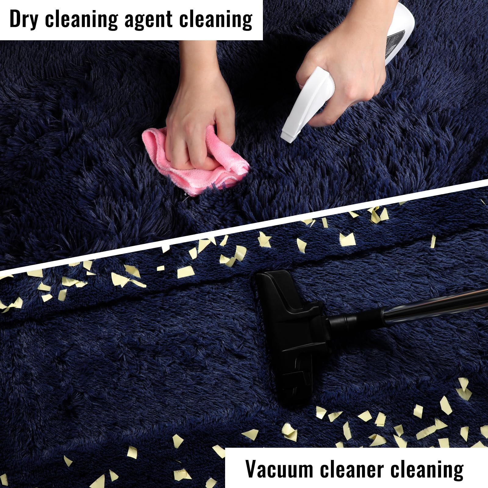 【 Cleaning Tips 】We recommend washing separately in water below 30°C (167°F) with a mild detergent, followed by air drying.(Don't use the dryer)Easy Daily Cleaning - Use a small handheld vacuum cleaner to remove dust or hair, and it's best to clean with a damp rag if you want the rug to last longer. Do not use chlorine or bleach.