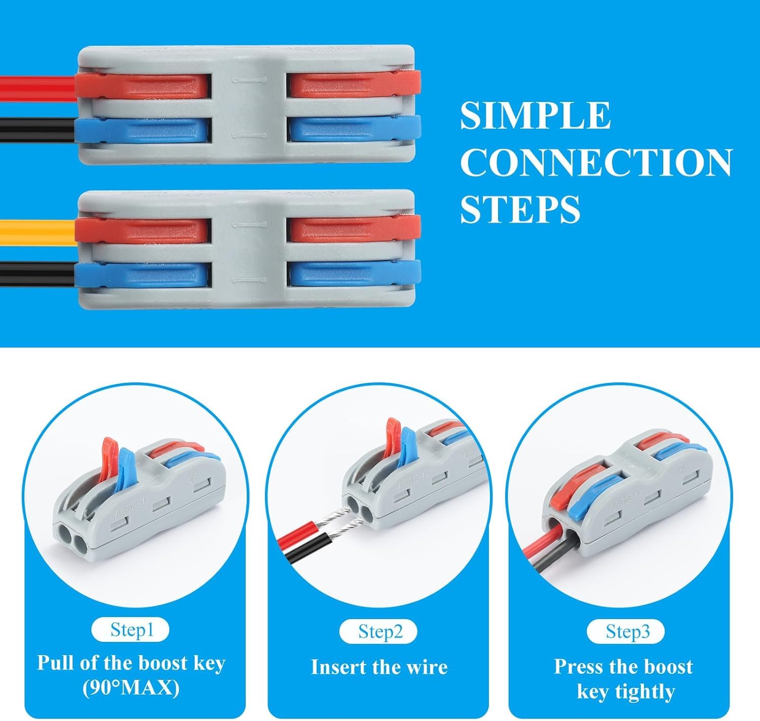 Easy to use: Strip the wires about 10 mm (0.4 inches) and insert them into the terminals. The step-down regulator is equipped with a lever-nut connection for quick connection. No wiring is required, reducing wiring time.