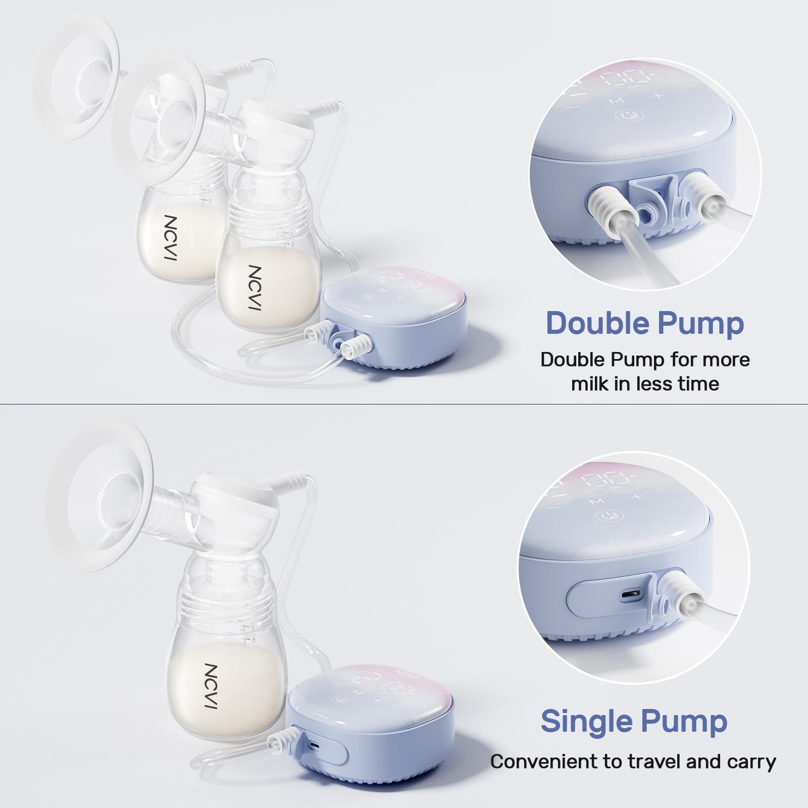 đ§ăHospital-Grade Suction & 4 Modes 9 LevelsăNCVI double electric breast pump delivers hospital-grade suction with 4 specialized modes (Massage, Stimulation, Expression, Mixed) and 9 adjustable levels. Mimics baby's natural nursing rhythm for comfortable, efficient milk expression. Customize your pumping experience to match your body's needs - from gentle stimulation to maximum output