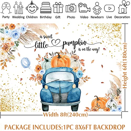 Pumpkin Baby Shower Backdrop: This boho truck pumpkin backdrop is perfect for fall baby shower, little pumpkin baby shower decorations; Also applied in occasions like family gathering, festivals, home decor; Professional photography like product photography, baby mini session, artistic portraits and DIY photo booths