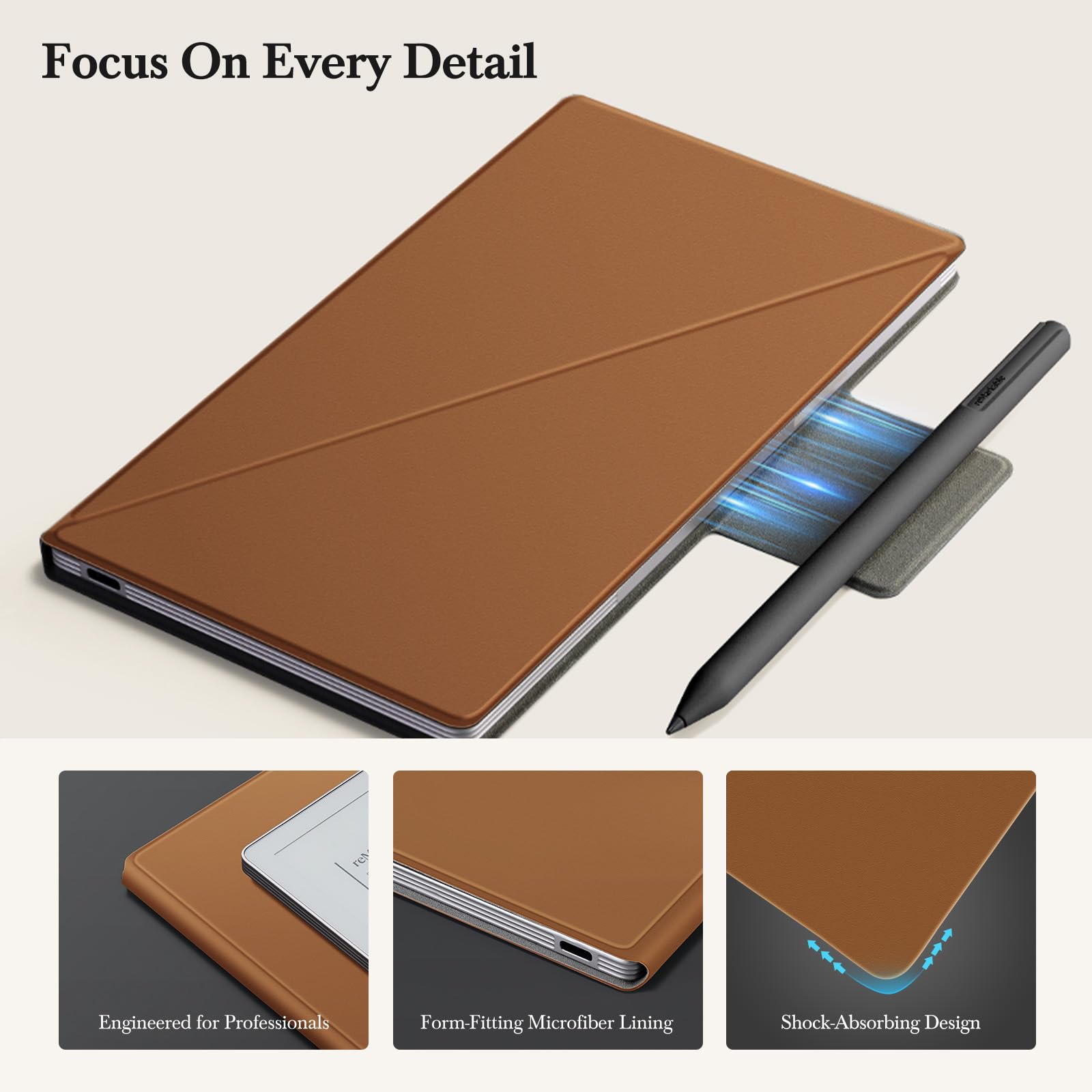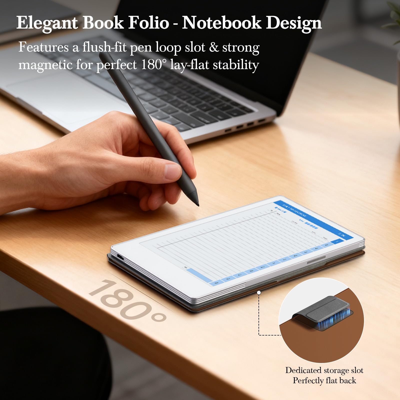 【All-in-One Design: Pen Loop + Professional Folio】: The dedicated pen loop features a magnetic back slot that keeps your Marker securely stored while maintaining a perfectly flat surface. This innovative design enables seamless 180° lay-flat positioning and stable desktop sharing during meetings. Combined with the elegant notebook-style folio, it offers complete portability, protection, and practicality—keeping your workspace organized and your reMarkable always ready for professional use.
