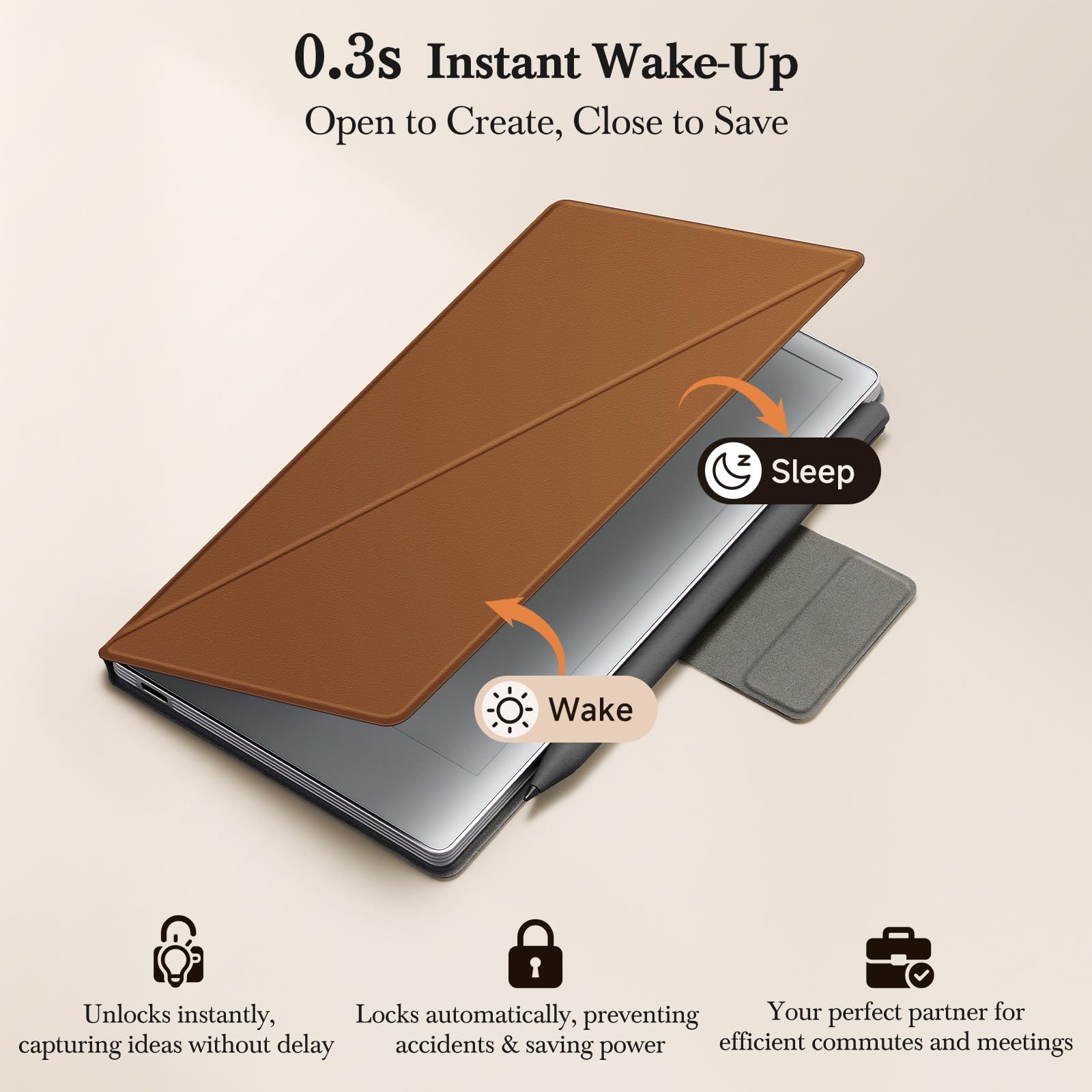 【Instant On/Off, Zero Waiting】: Experience seamless workflow activation. The smart cover enables instant wake-up upon opening (responsive in <0.3 seconds), capturing sudden inspirations without boot-up delays. It auto-locks upon closing, preventing pocket mishaps and saving battery, making it ideal for hectic commutes and efficient daily use.