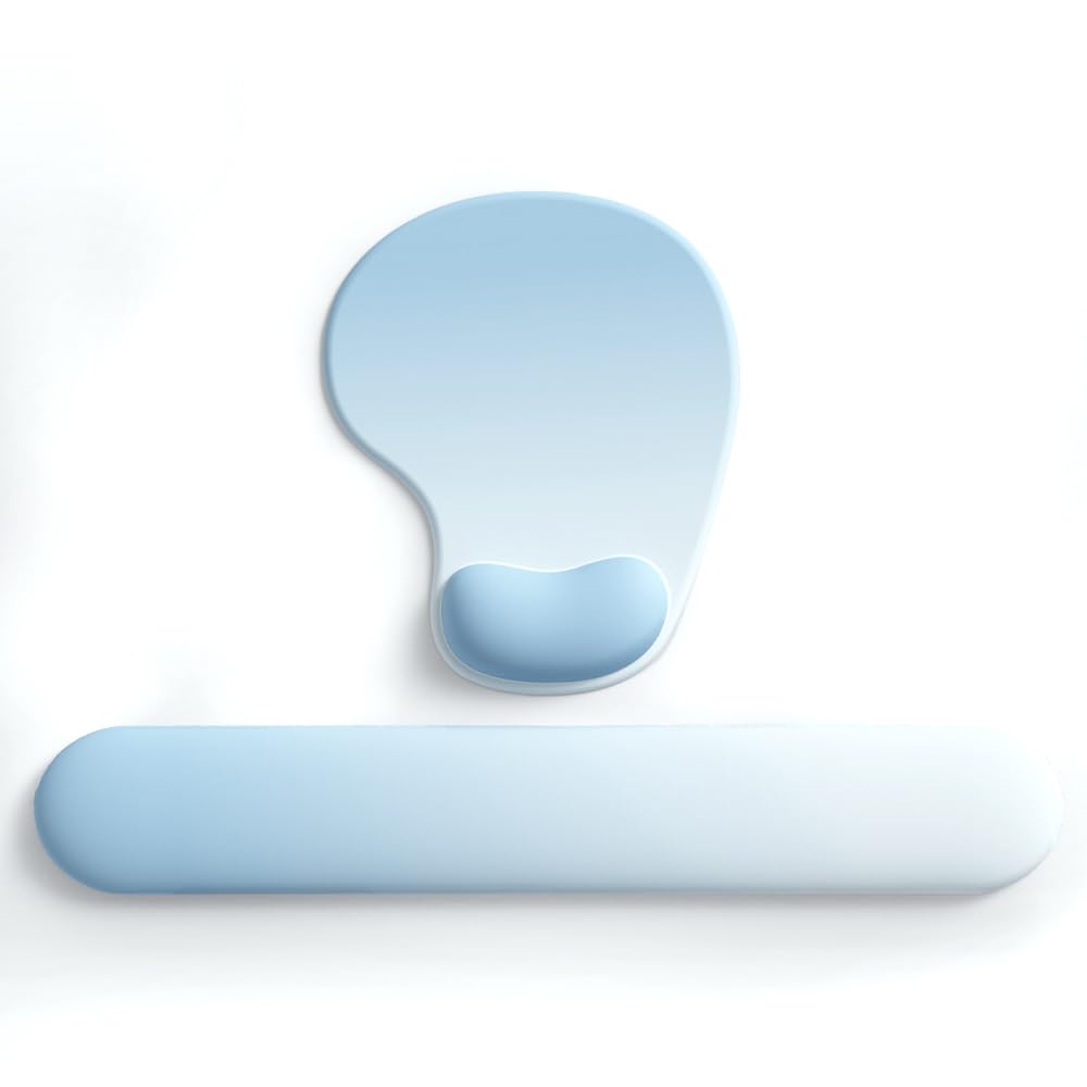 ✓ Optimized Ergonomic Comfort Set ► Elevate your desk experience with our precisely engineered - [ gel-filled wrist rest mouse pad ] - and - [ plush memory foam keyboard wrist rest ]. This thoughtful duo - [ promotes neutral wrist posture ] - and helps - [ alleviate discomfort ] - from extended computer use, mitigating the risk - [ of repetitive strain injuries ].