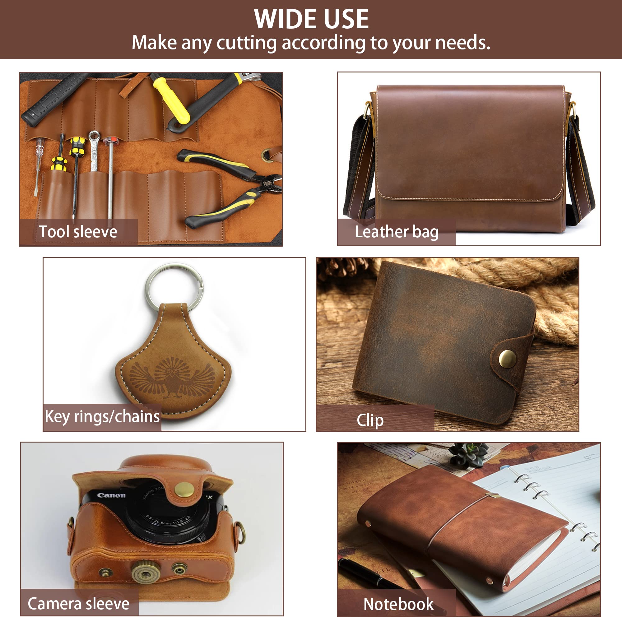 Thick Leather for Crafts: Great for Arts, Crafts, Tooling, Stamping, Sewing, Carving Properties, Hobby Workshop. The leather hide can be used in all leather craft projects, such as carving, dyeing, embossing, holster, blade, stamping, handbag, wallet, holster, shoes, insoles, hats, belts,and other leather craft projects.