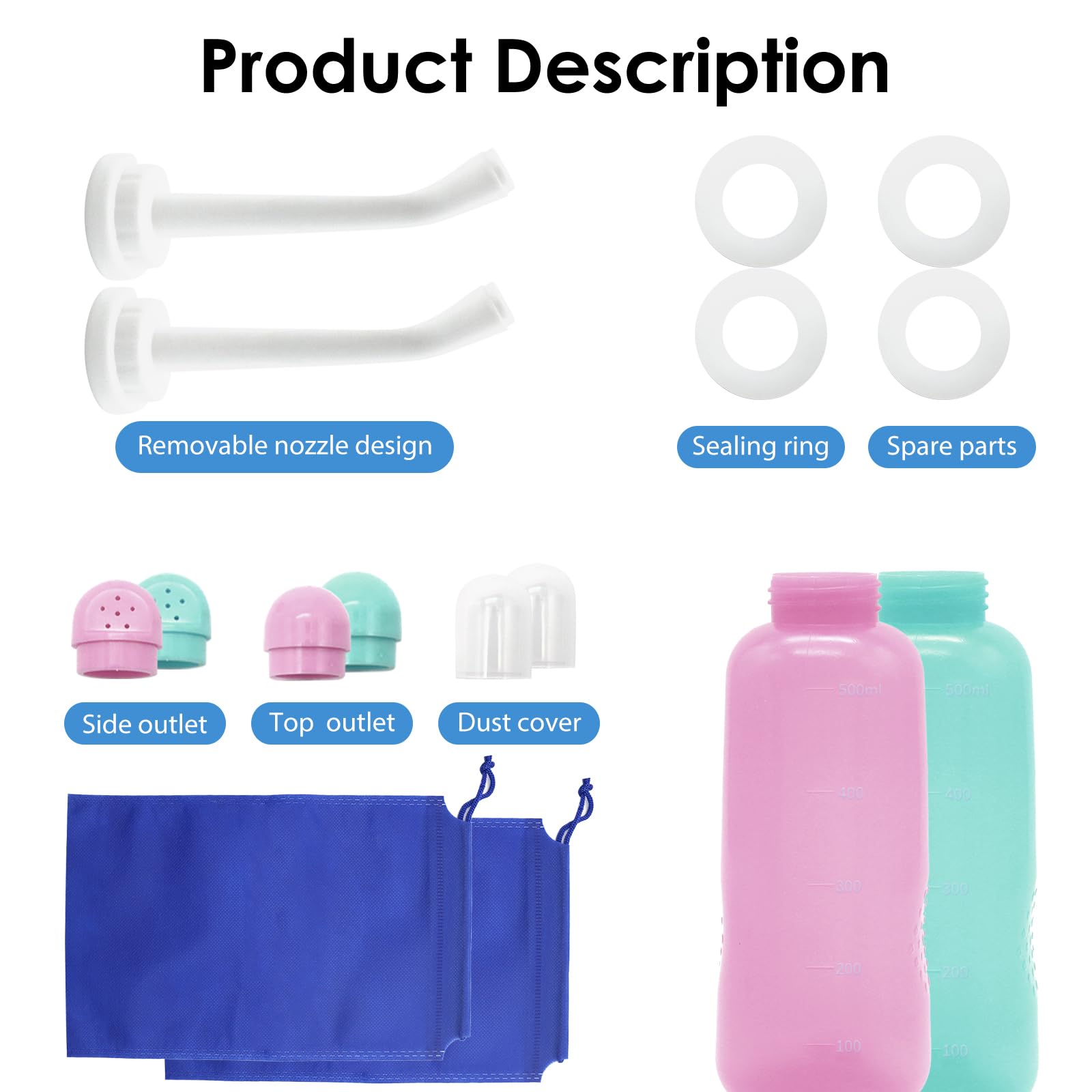 LARGE CAPACITY: The bigger is the better, 500 ml/17.5 oz is a balance between portability and capacity. Compared with 350 ml or 400 ml ones, 500 ml provides extra capacity to handle most uses after one fill while maintaining the size and portability, When not in use, the bottle can be put into the included storage bag for easy storage and carrying.