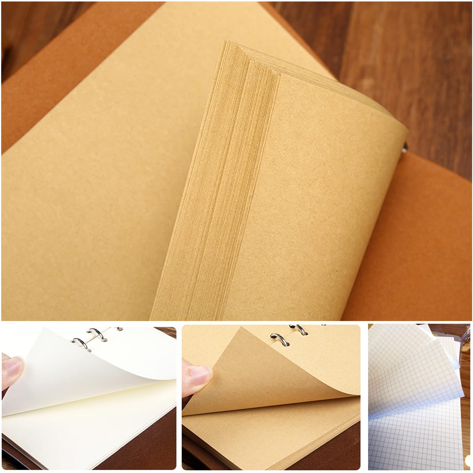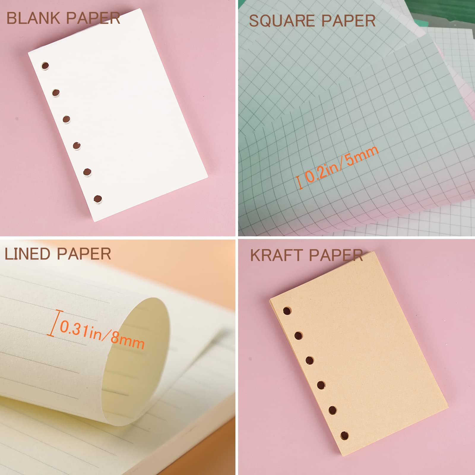 【Best A7 6-Hole notebook refills set】This set includes 45 Sheets (90 Pages) Gridded Paper Refills + 45 Sheets (90 Pages) Lined Paper + 45 Sheets (90 Pages) Kraft Paper + 45 Sheets (90 Pages) Blank Loose Leaf Paper + 2pcs A7 Zipper Binder Pockets + 5 Pcs A7 Dividers + Ruler.Meet your daily record, to-do list, diary and regular writing.