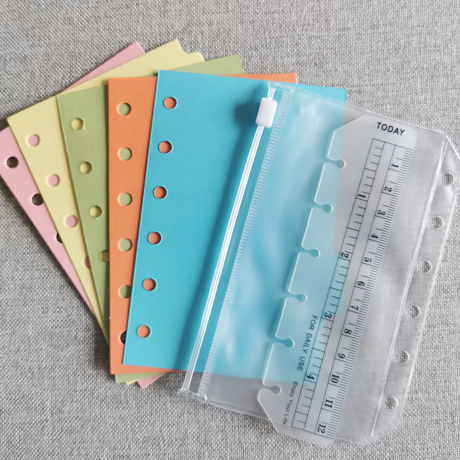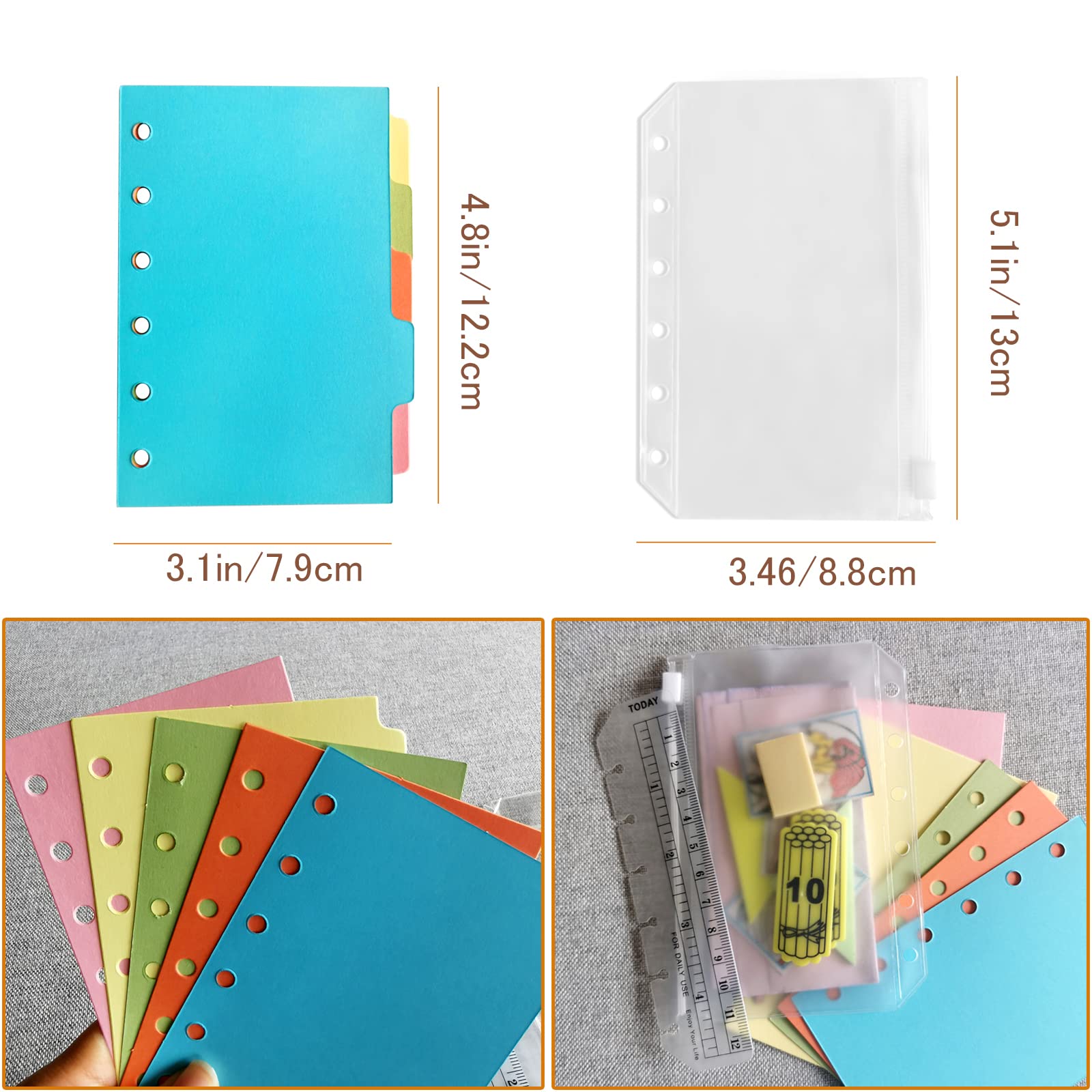 【Perfect Binder Notebook Accessories】 ● 2 pcs large zip pocket - Zipper Pocket size is about 13 x 8.8 cm/5.11 x 3.46 inch, you can collect small stuff like tickets, stamps, money or pen, easily carry and find it through refillable notebook; ● 5 Colorful A7 Subject Divider- Made of coated paper, thicker than refillable paper, help you organize your note and quickly to find your files; ● Imperial and metric measurements Ruler - transparent and light, measurement can reach 12cm/4.72 inch.