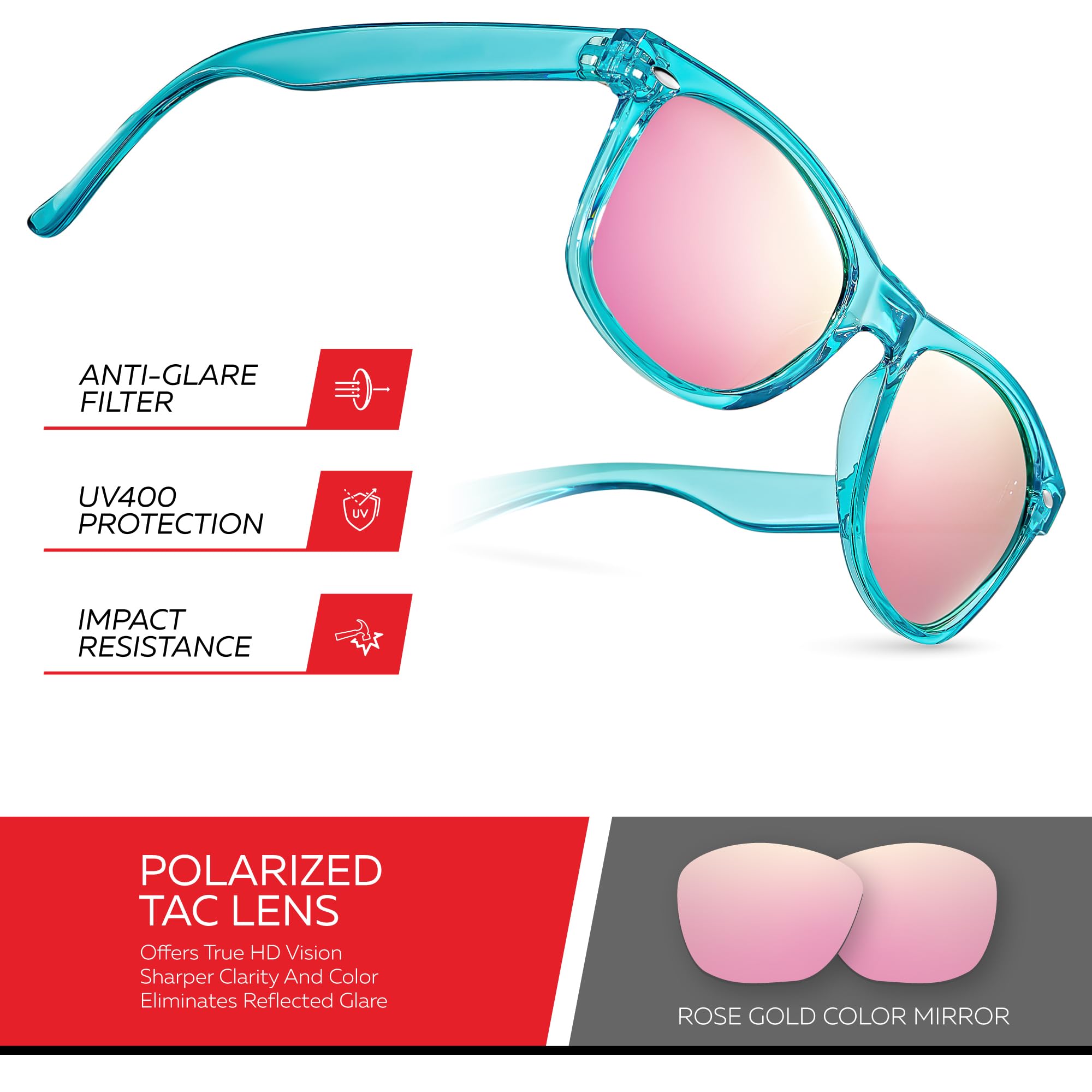🕶️ 1.1MM TAC POLARIZED LENSES WITH UV400 PROTECTION: Keep your eyes safe from that annoying glare from shiny surfaces (e.g. pavement, snow or water) with our designer sunglasses for women and men, which feature polarized anti-glare lenses with UVA & UVB protection.