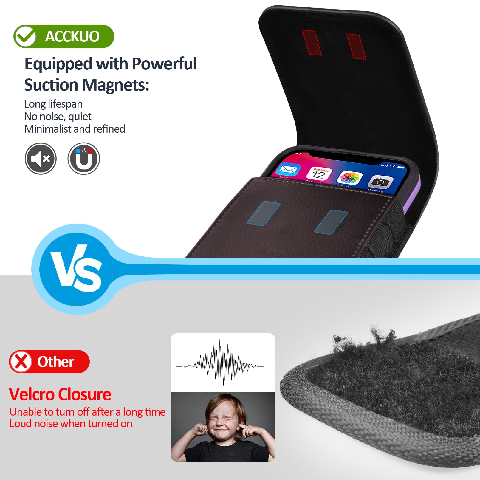 Comprehensive Security Protection: The strong magnetic design effectively secures the phone to prevent drops while allowing easy access. The lining protects the phone screen from scratches, making it suitable for formal occasions with silent operation