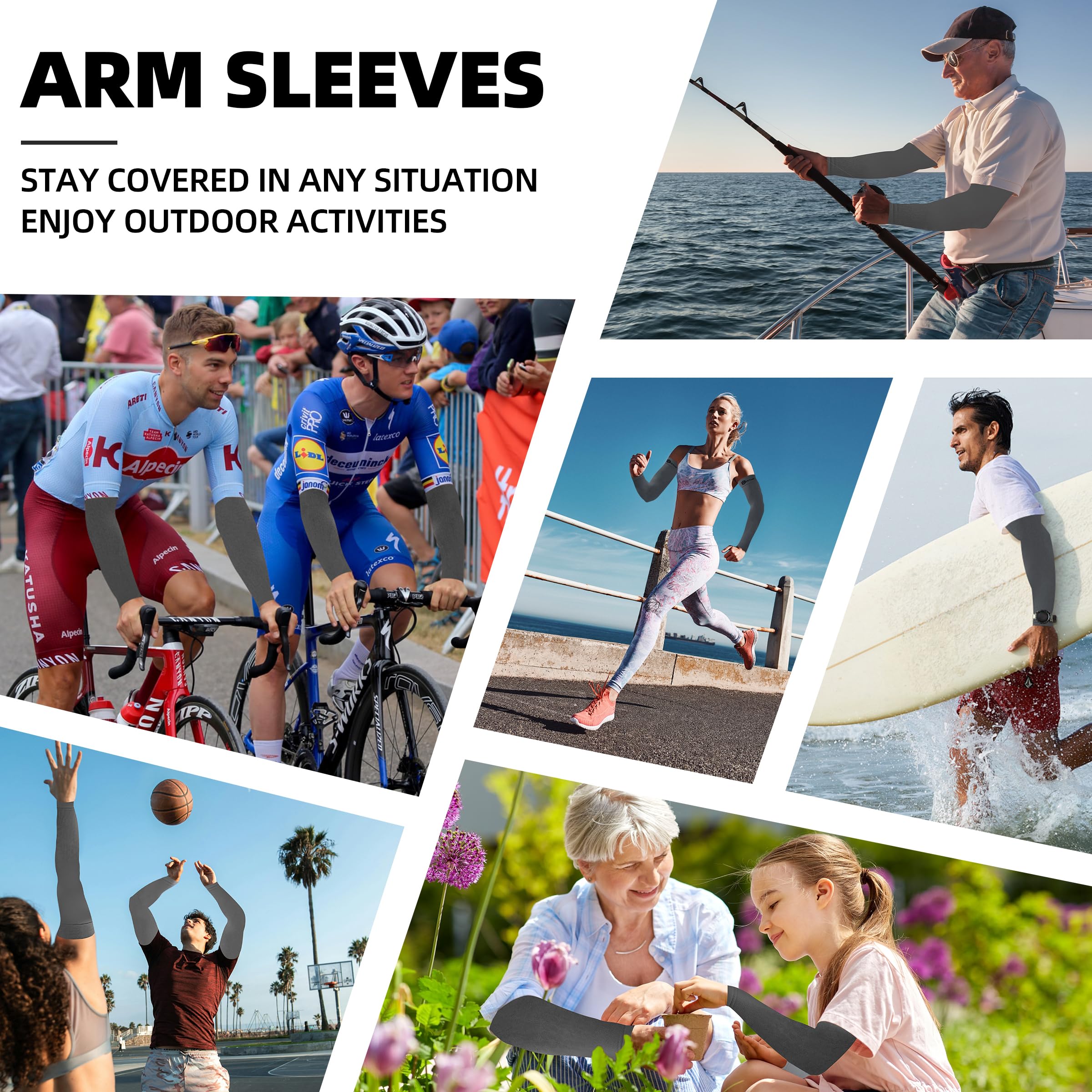 【Breaking the Conventional Elasticity】We add elastic fiber to the traditional sleeves, which greatly increases the elasticity of the uv arm sleeves for men. Sleeves to cover arms can meet the needs of different groups of people. The length of the sun sleeves can be stretched from 15.5 inches to approximately 48 inches, and the sleeves is 360° integrated, there are no seams throughout the long arm. No matter your arms are thick or thin, you won't feel uncomfortable due to strangulation marks.