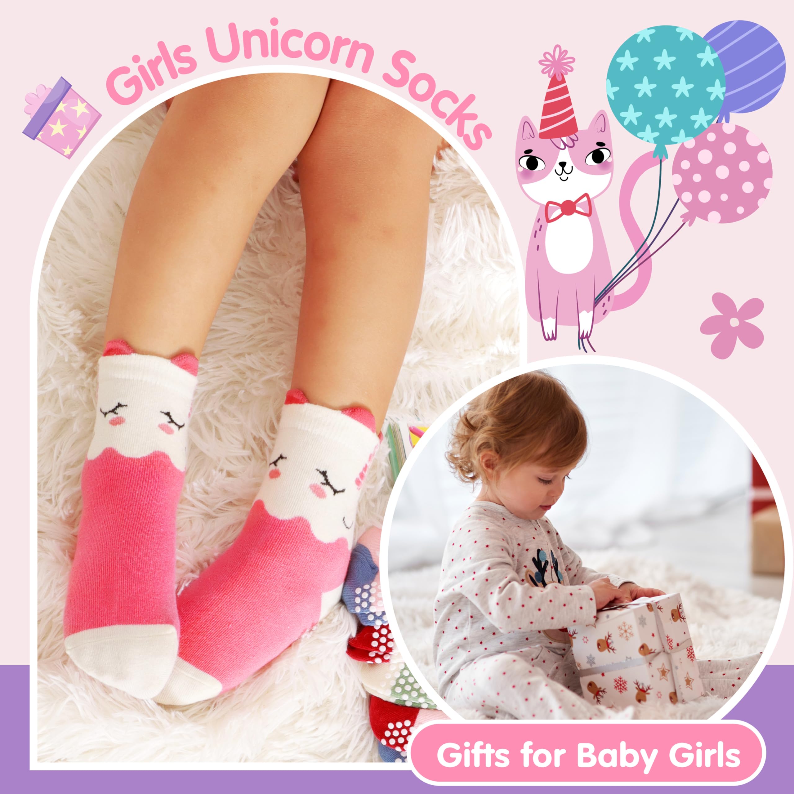 【High Quality Material】These baby girls girps fun socks are made of 90% cotton, 8% polyester, 2% spandex. They are breathable and keep kid’s feet dry all the day.