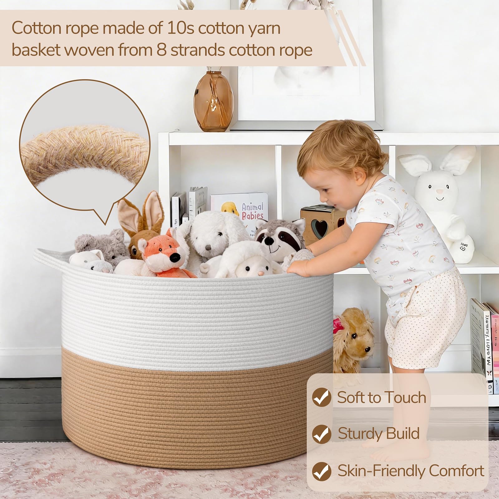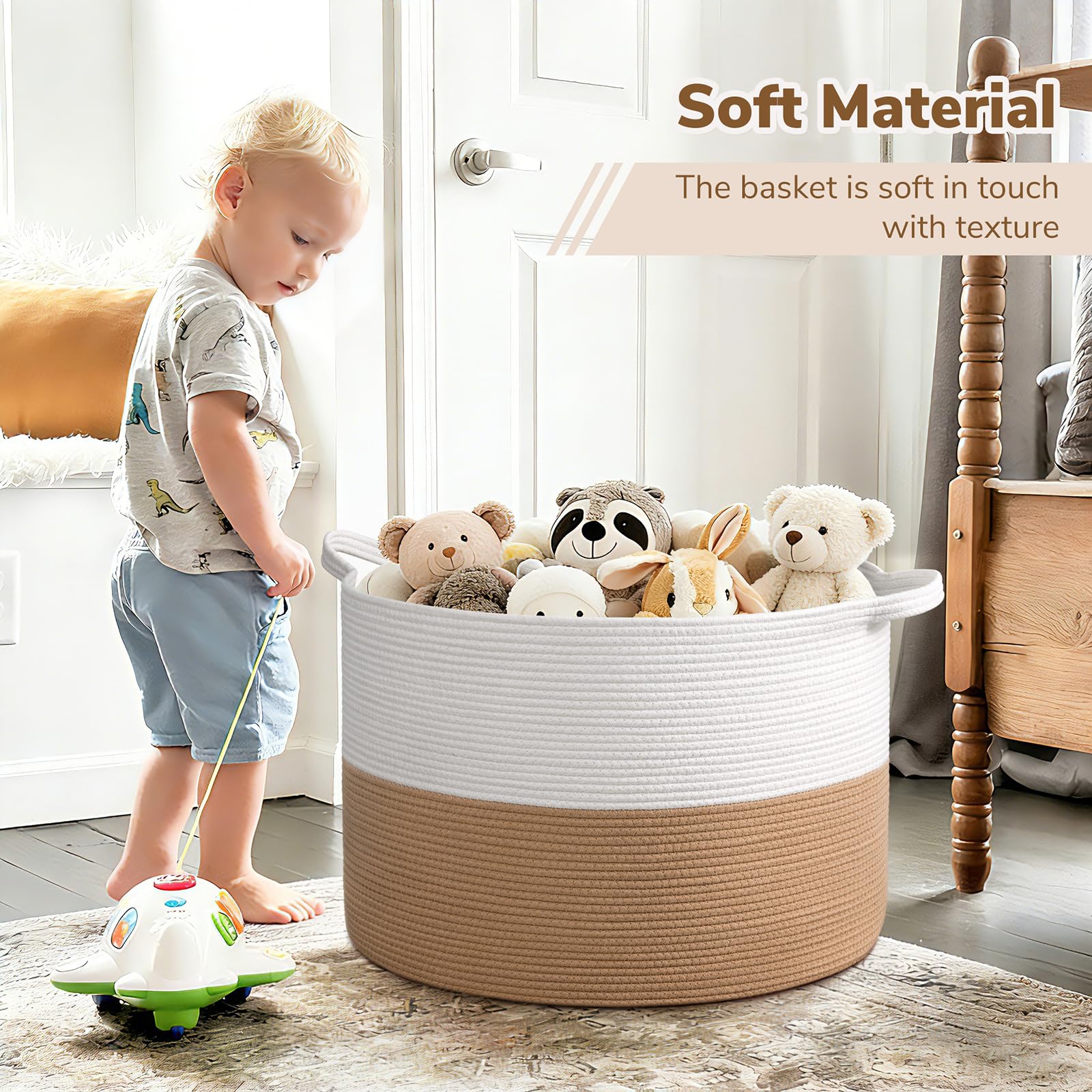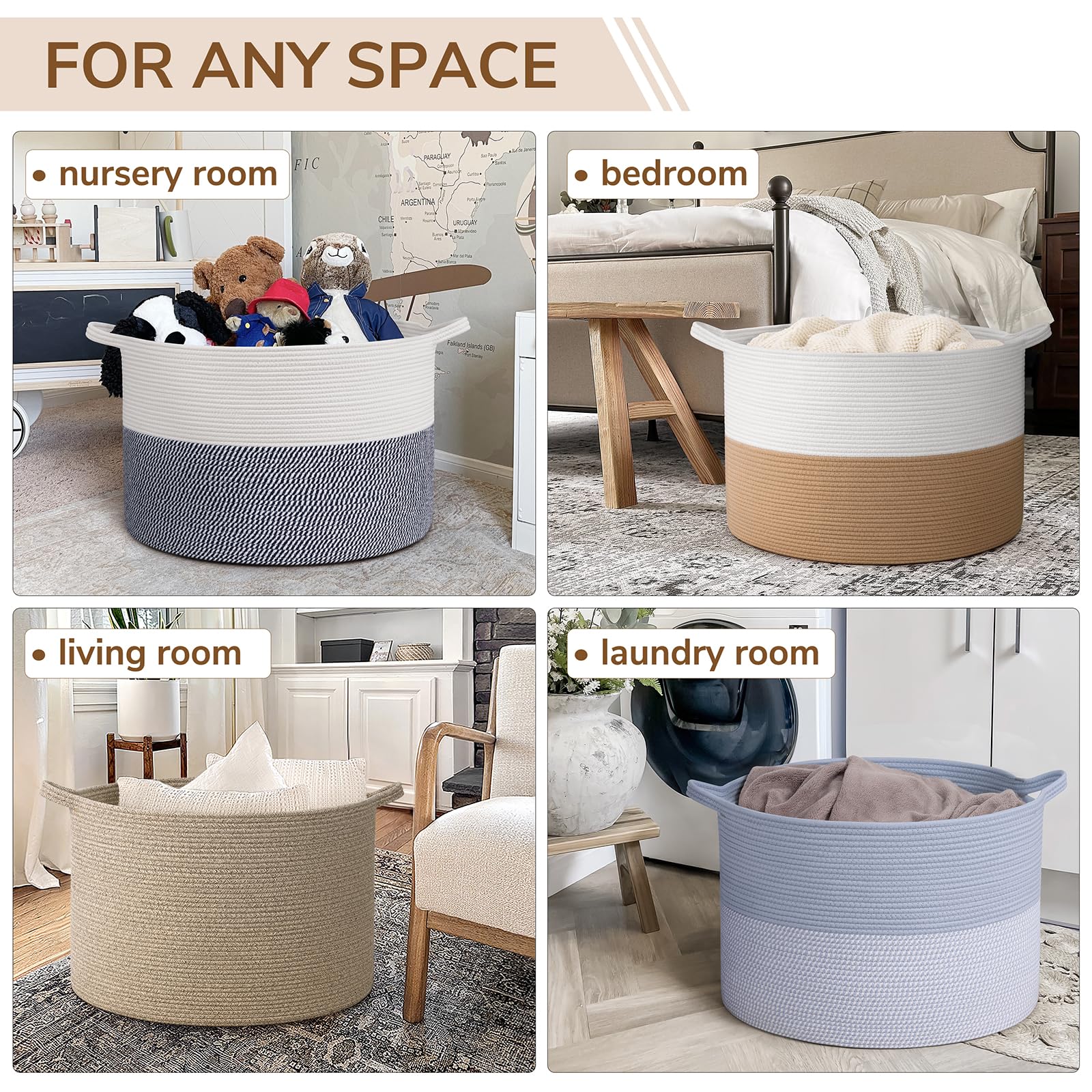 Versatile Use. Perfect for toy storage, laundry hampers and blanket storage, this basket is suitable for living rooms, bedrooms, nurseries, and laundry rooms.