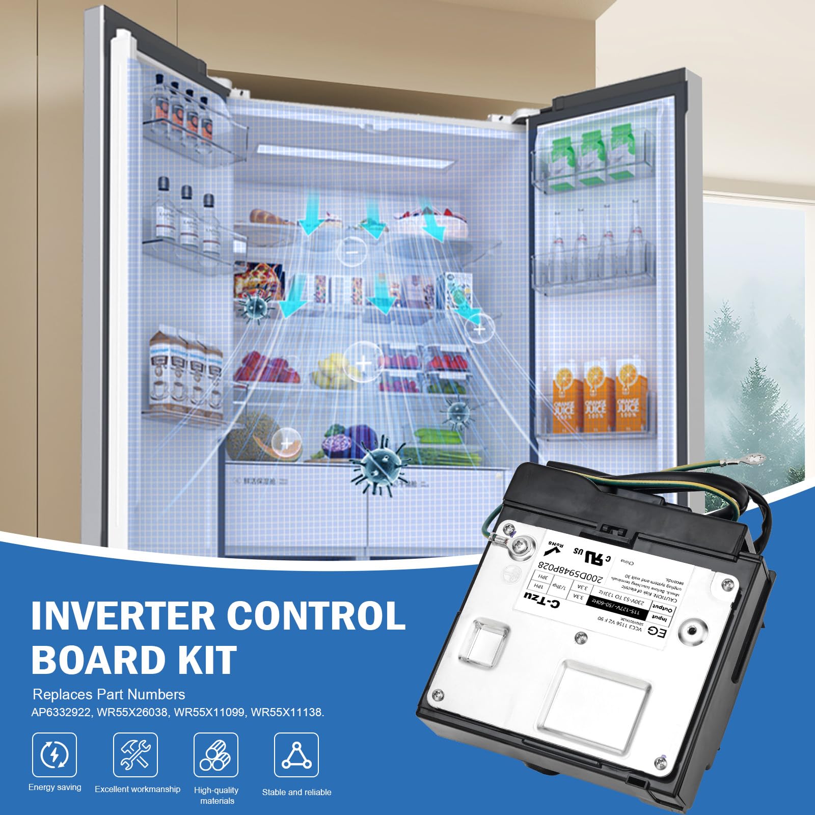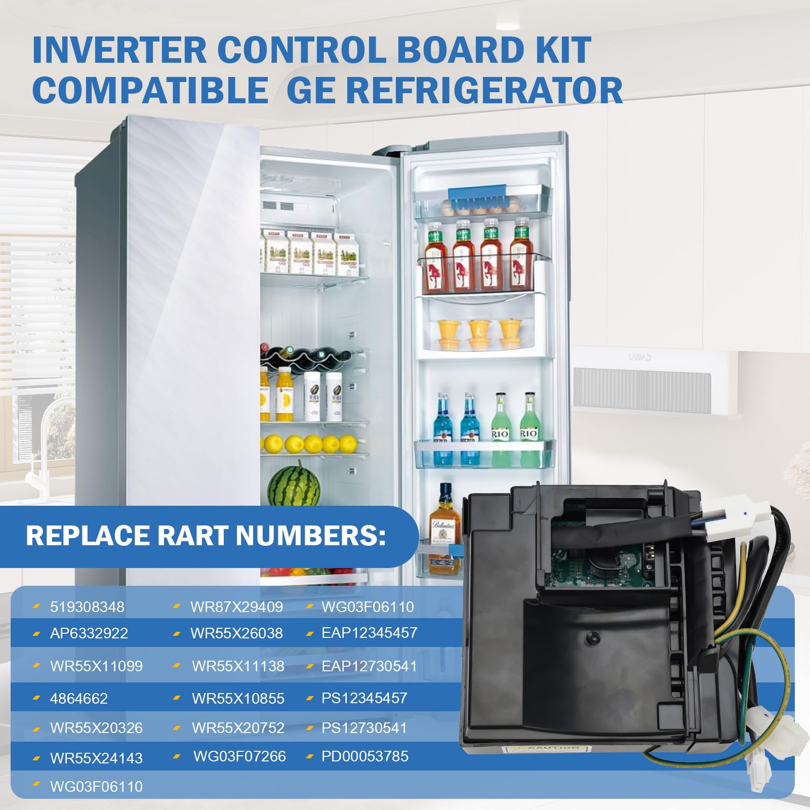 Compatible Replacement Parts: The WR49X10283 inverter board is designed specifically for GE refrigerators and serves as a direct replacement for the following part numbers: WR55X10490, WR55X10685, WR55X10979, WR55X11029, AP5669522, PS6883663, 2677747, and VCC3 1156 K8 F 90. It is the ideal solution for replacing the GE refrigerator inverter WR49X10283