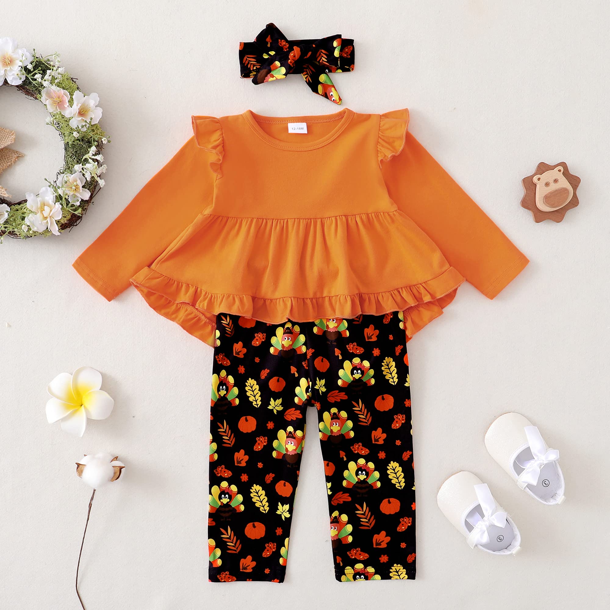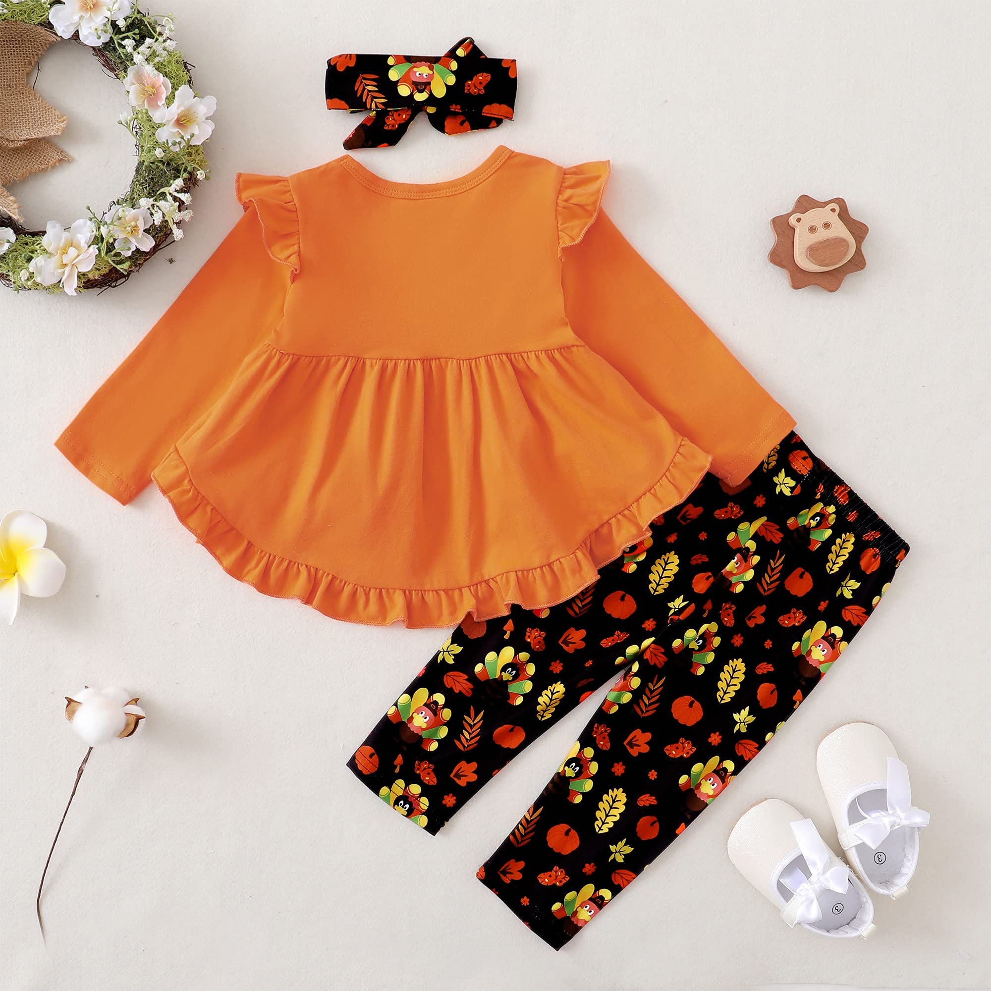 3 Pieces Toddler Little Girl Outift for Fall Winter: 1pc baby girl shirt + 1pc baby girl pants + 1pc untied headband