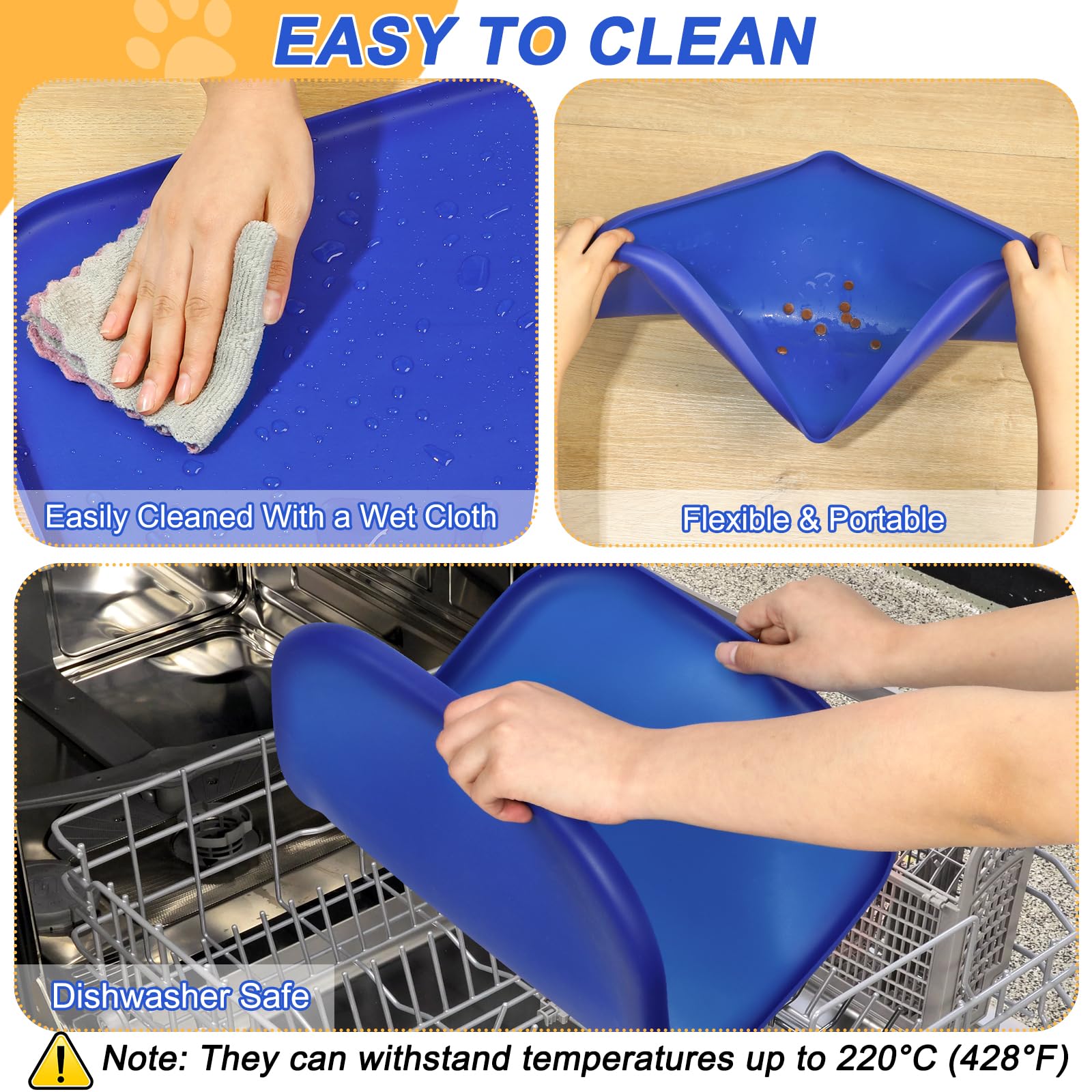 Safe, Healthy Materials - Our non slip elevated pet food placemats for pets are made from high-quality food-grade silicone that is non-toxic and 100% free of harmful chemicals like BPA, PVC, and phthalates. It can withstand temperatures up to 464°F, making it durable yet safe - the perfect choice for your kitten, dog, or any pets.
