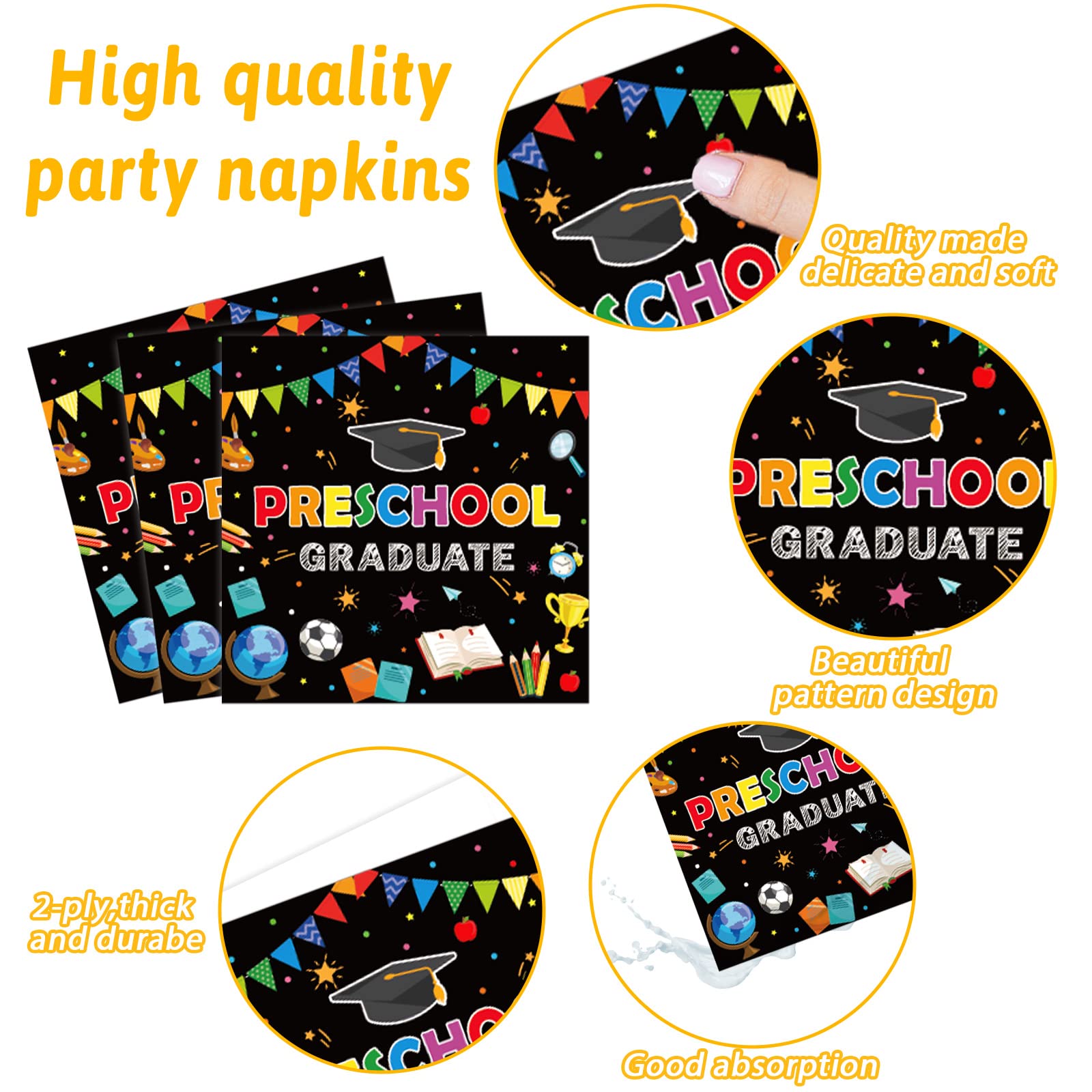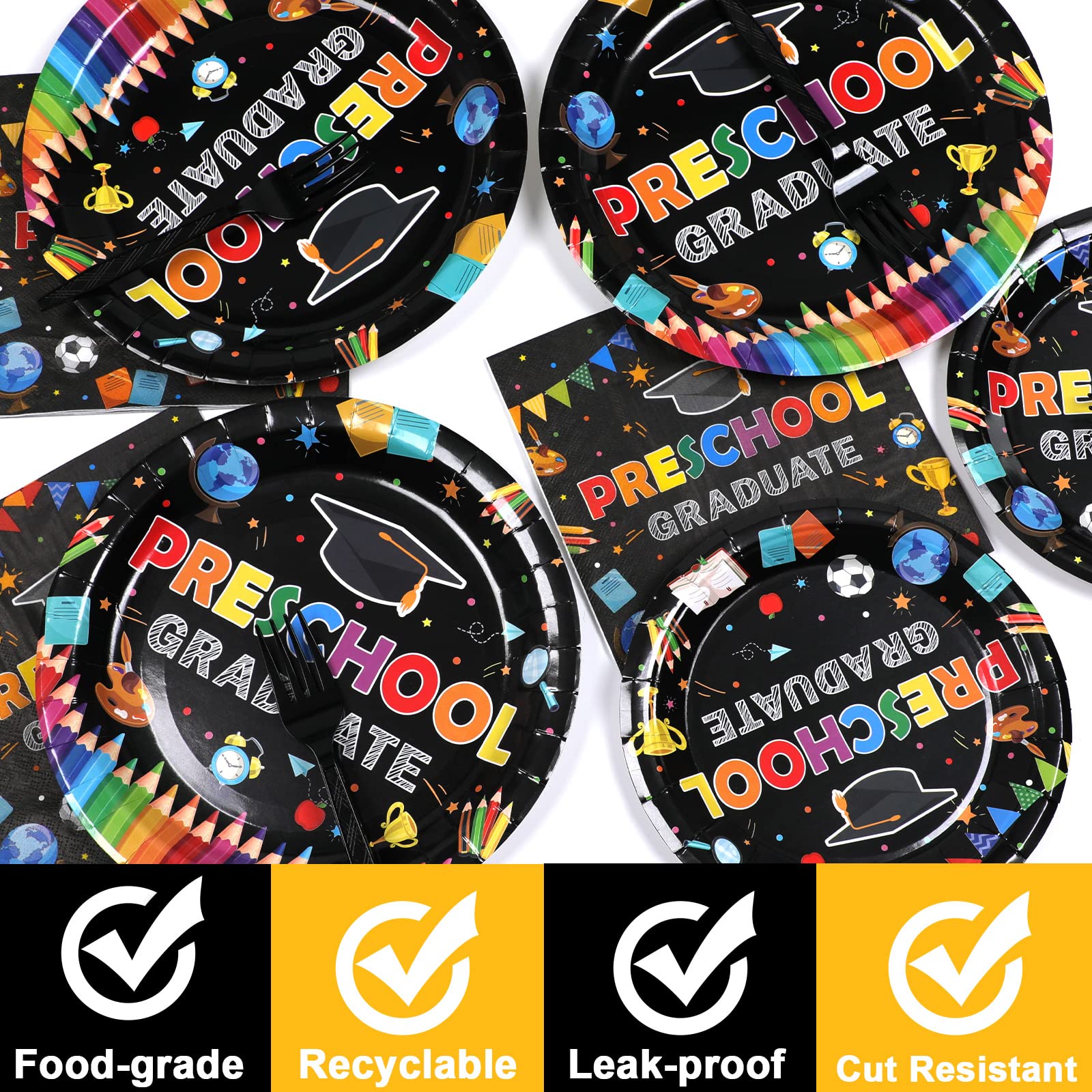 Premium material: All our preschool graduation-themed plates and napkins are made of high-quality paper, non-toxic, odor-free, heat-resistant, and durable. The patterns and colors are beautifully printed and fade-resistant to give you a party full of party vibes.