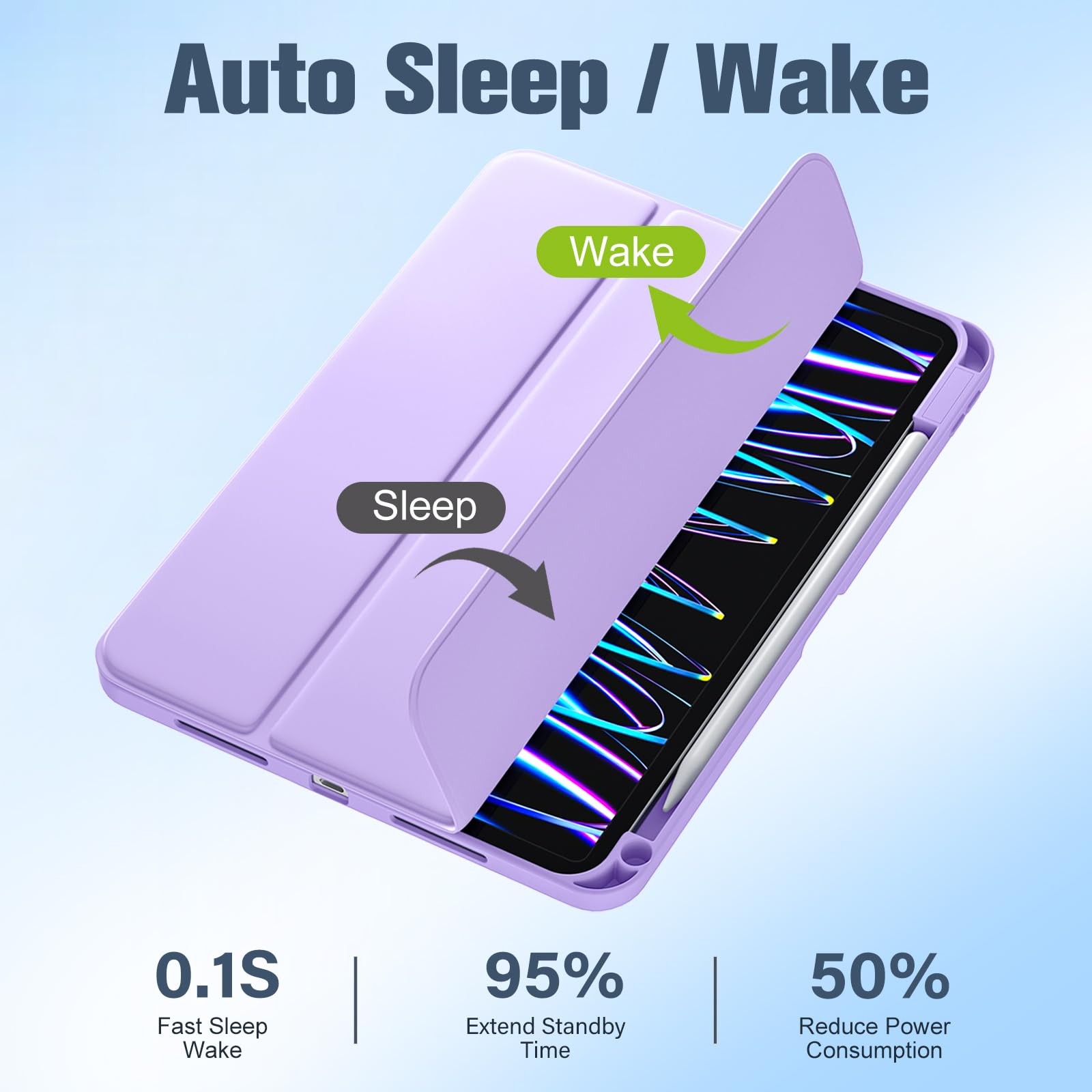 【Auto Sleep & Wake 】This iPad Pro m4 11 inch case supports auto wake and auto sleep functions, enabling significant power conservation and extended battery standby time. As a result, charging frequency is drastically reduced, enhancing overall device efficiency.