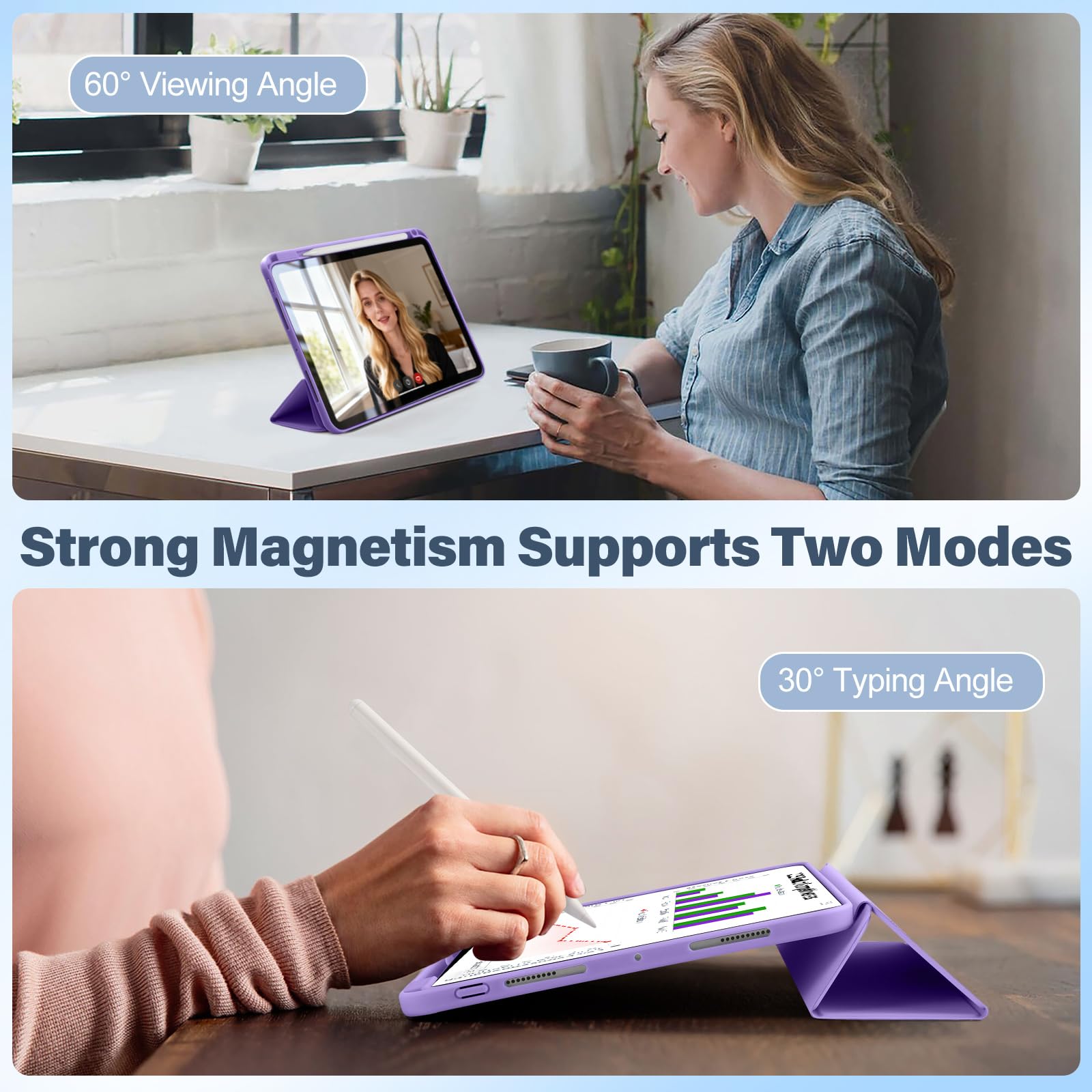【Typing Angle/Viewing Angle】This apple iPad Pro 11 inch case features a tri-fold design, and when folded, the triangular stand provides exceptional stability. The case offers two daily-use angles: the 30° angle is ideal for drawing, typing, or chatting, while the 60° angle perfectly suits scenarios like watching videos, video calls, and handling emails.