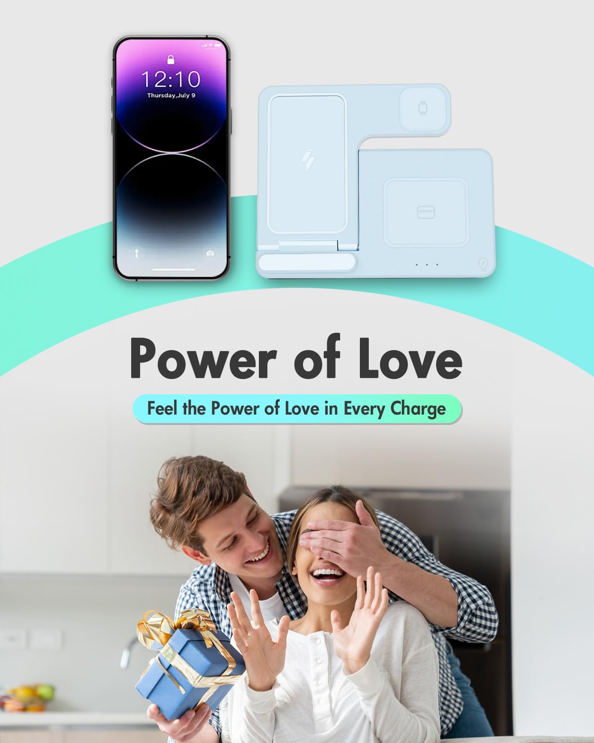 3 in 1 Wireless Charger Station: This 3-in-1 wireless charger is designed to work seamlessly with a variety of devices, including iPhone 17 16e 16 15 14 13 12 11 8 Pro Max Mini Plus X XR XS Max SE Plus Series, Apple Watch Series 10 9 8 7 6 5 4 3 2 SE and Ultra, AirPods 2 3 Pro 2 Pro 3 Airpods 4 (ANC), (Note: for Airpods 2 3 4, needs work with a MagSafe charging case). A perfect Christmas present for couple (to husband or wife), son, daughter, or any loved ones.