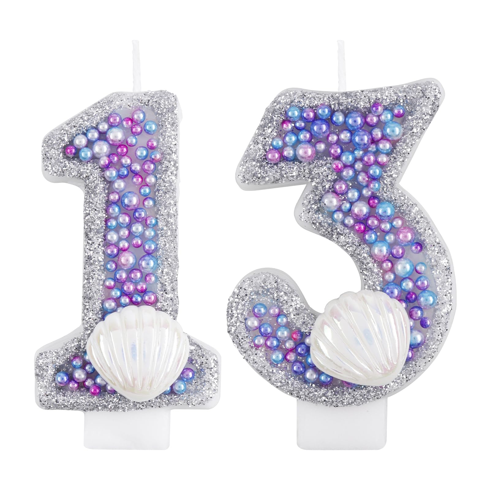 Girls Glitter 13 Birthday Number Candle, Pink Shell Sequins Blue Purple Pearls Number Birthday Candles for Boys Girls Birthday Cakes Mermaid Themed Birthday Decorations Party Supplies Number 13 Candle Features: Glitter Shinning Delicate appearance: The mermaid happy 13th birthday cake candles are meaningful for you to celebrate your first birthday and nice cake topper decoration for embellishing your birthday cake and cupcake, bright glow for creating romantic atmosphere and adding a touch of elegant. Adapt to the venue: Ideal mermaid cake party decoration for many occasions, such as boys girls birthdays, baby showers, anniversaries, retirement parties, family reunions, weddings, Hawaiian parties, even Christmas, must-have items for party cake, bring you memorable and meaningful party. Specifications: Quantity: 2 pieces glitter mermaid number candle Material: wax, plastic Number Candle length: approx. 8 cm/ 3 inch Total length: approx. 11.5 cm/ 4.5 inch Color: as pictures shown Package includes: 1 x Glitter Number 13 Numeral cake candles with pink shell and blue purple pearls Warm notices: Please allow little error on the size due to manual. Do not leave the lighted candles unattended. Please place candles out of reach of children. And please do not light candles on or near flammable materials. Please keep the candle away from the fire when not in use, when burning, adult's supervision is needed.