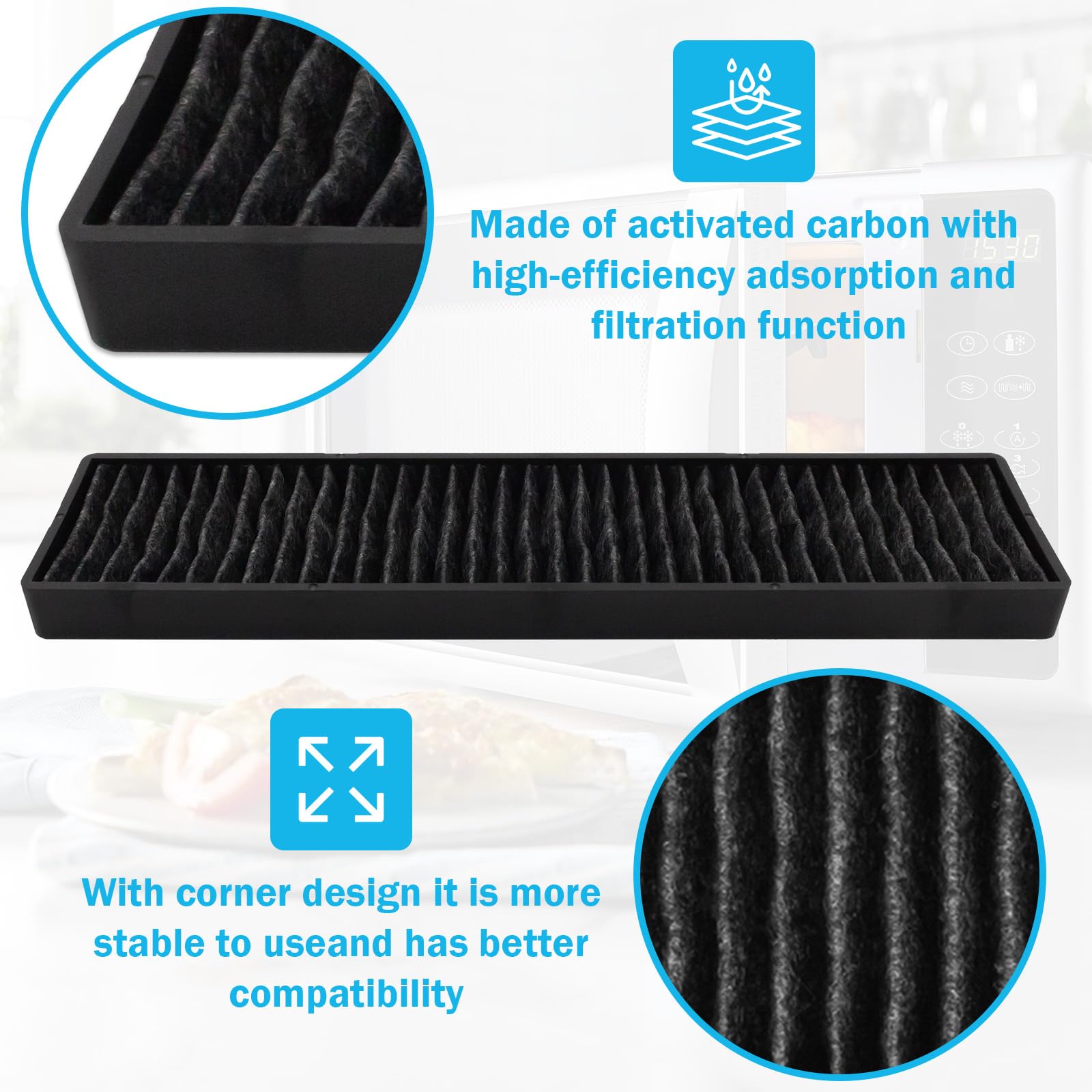 Reliable Construction - Made with quality materials, Ensuring fresh and clean air circulation in your microwave.Simply locate the charcoal filter above the microwave door. Please note that this filter is not cleanable and should be replaced every 3 to 6 months for optimal performance.Replacing the filter is quick and easy