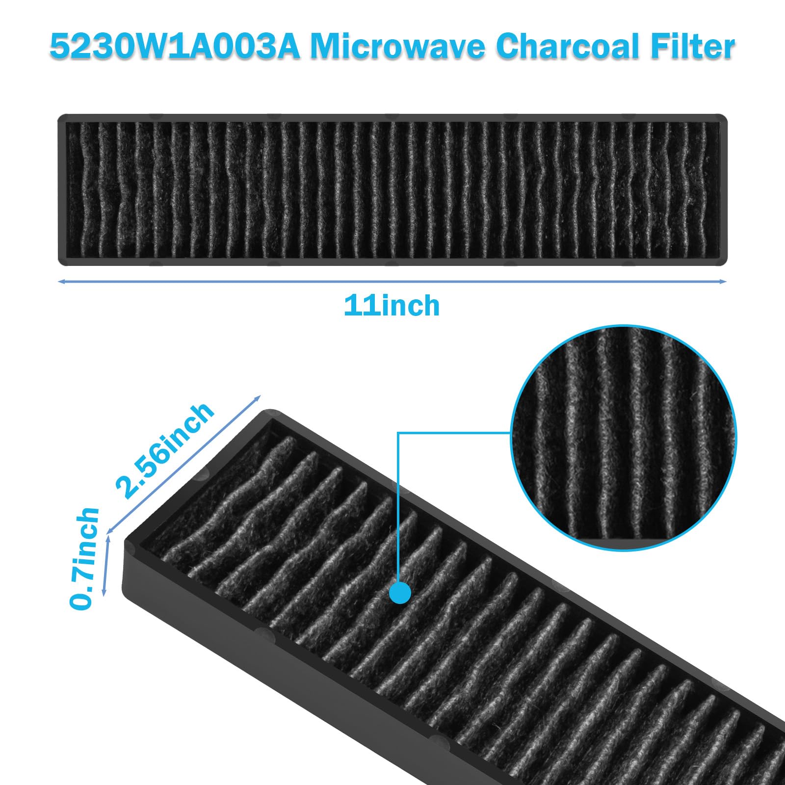 5230W1A003A Microwave Charcoal Filter :Microwave Charcoal Air Filter Size: 2-1/2 inches by 11-1/4 inches.Type: Filter Finish: Matte Suitable For: Convection Microwave Oven, Solo Microwave Oven, Microwave/Oven Combination Model: 5230W1A003A microwave filter replacement for GE JNM7196SK6SS, JVM7195SK6SS, JNM7196DK5BB, JVM7195DK5WW, JVM7195EK5ES, PNM9216SK5SS, PVM9005SJ8SS