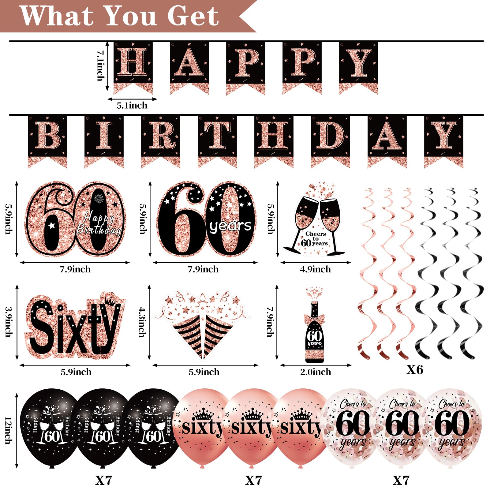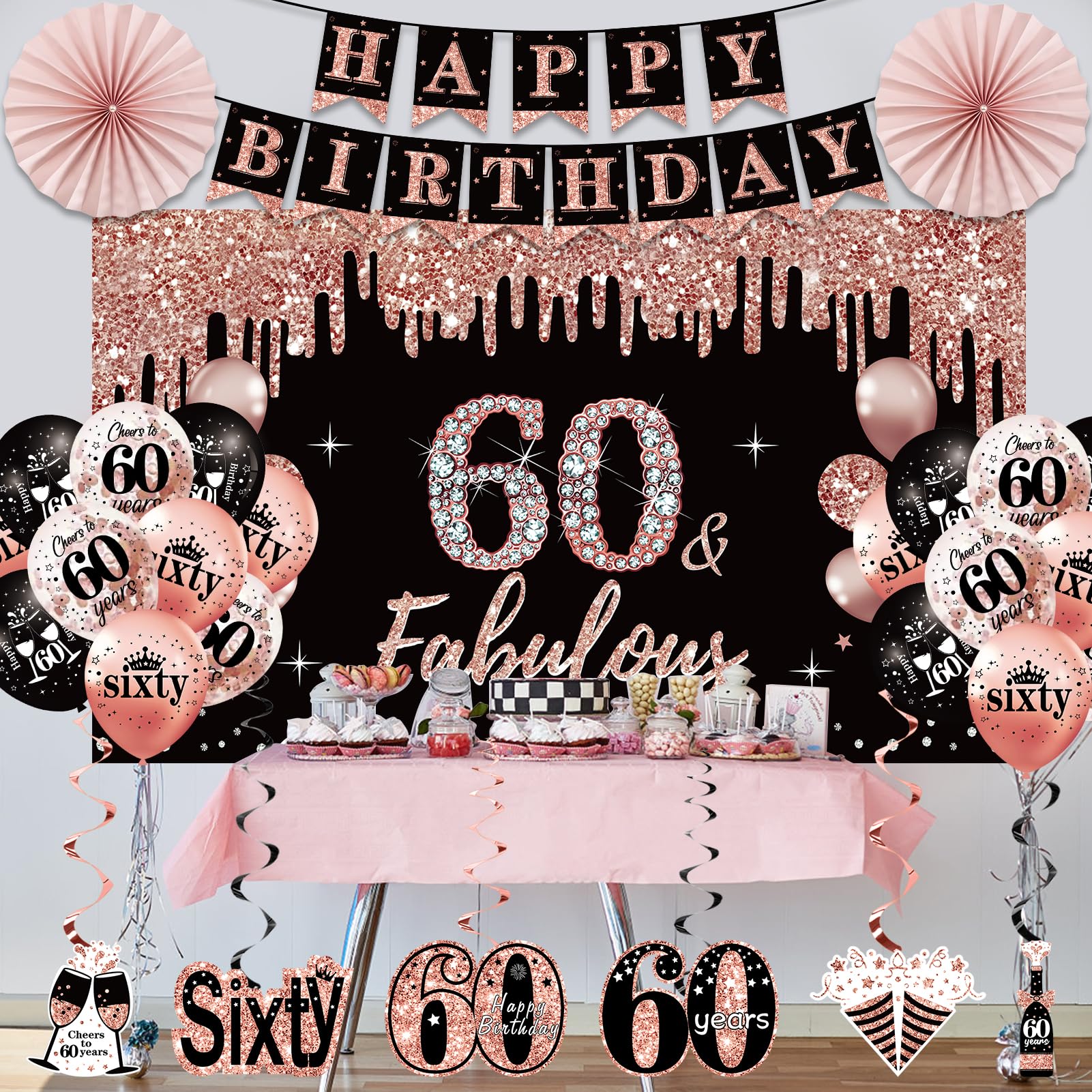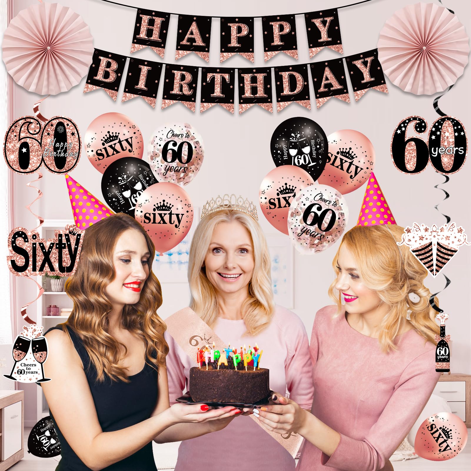 Rose gold 60th birthday decorations: Create a warm and elegant atmosphere with our womens 60th birthday party decorations. Cheers to 60 years
