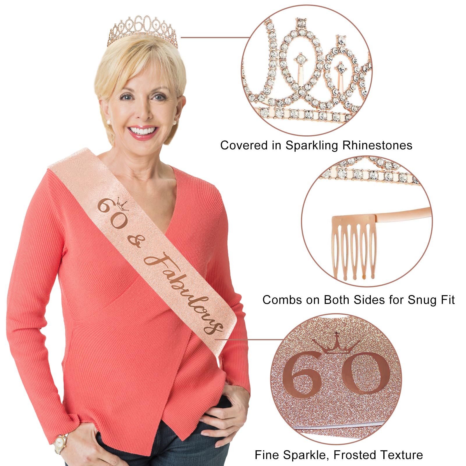 Happy 60th birthday decorations kit: The sparkling design of 60th birthday crown and sash suits women of all body shapes, makes the sixty birthday protagonist shine in the party