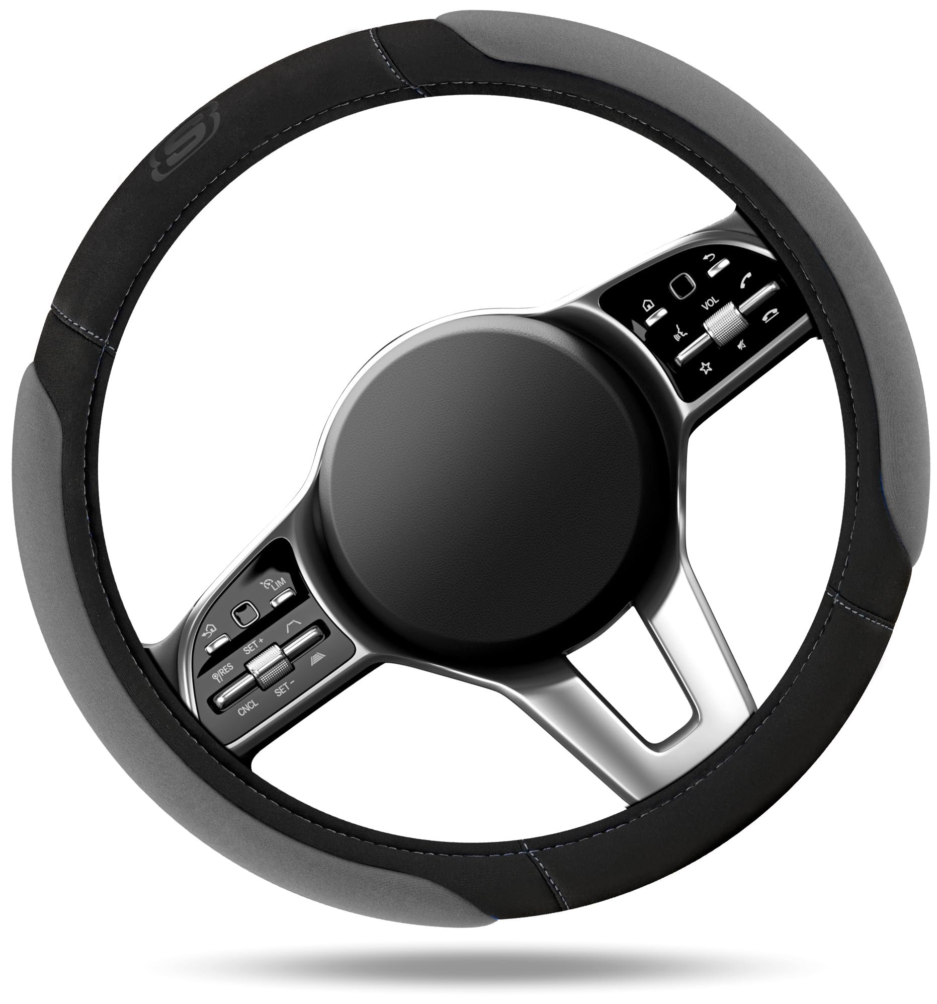 ANTI SLIP DESIGN - The rubber inner ring adds a non-slip line, make sure the steering protector won't move during driving. Keep your safety all the time, and you will be able to better control the steering wheel.