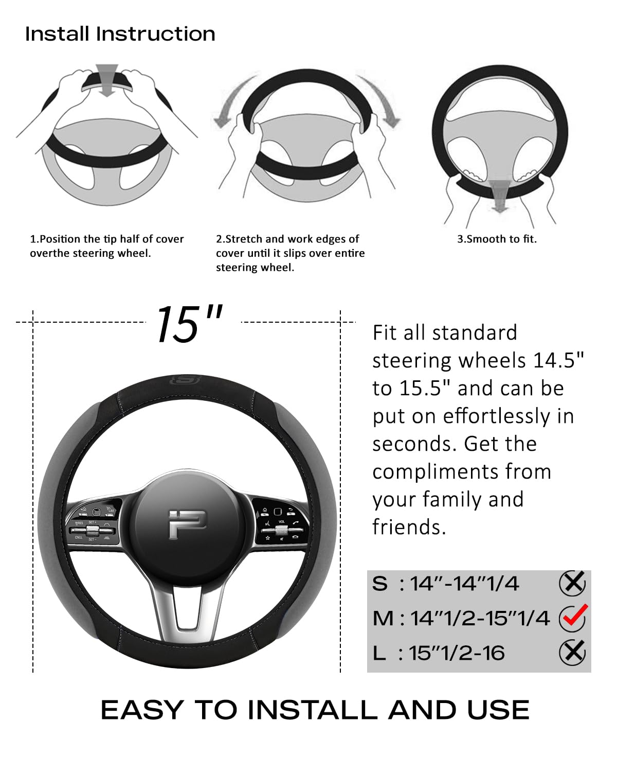 EASY INSTALLATION - Skechers car steering wheel cover is easy to install with 3 steps. Just cover the steering wheel with the product from the top, pull it to cover the whole steering wheel, and adjust the product to snugly fit on the steering wheel.
