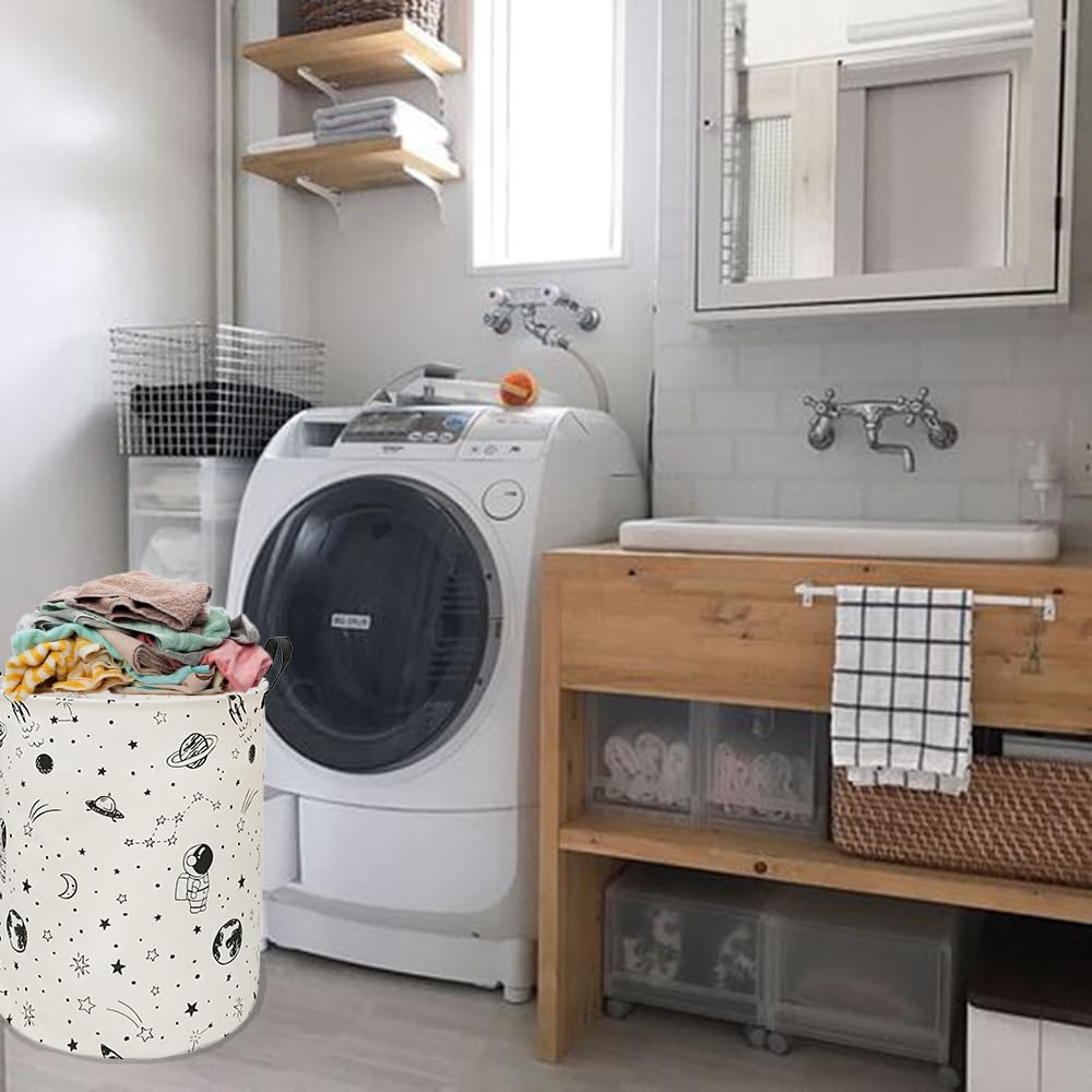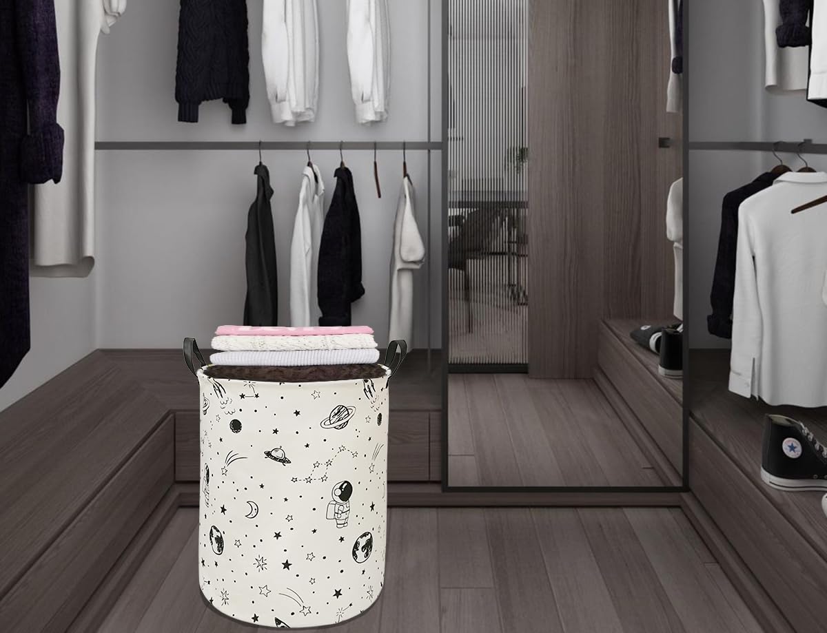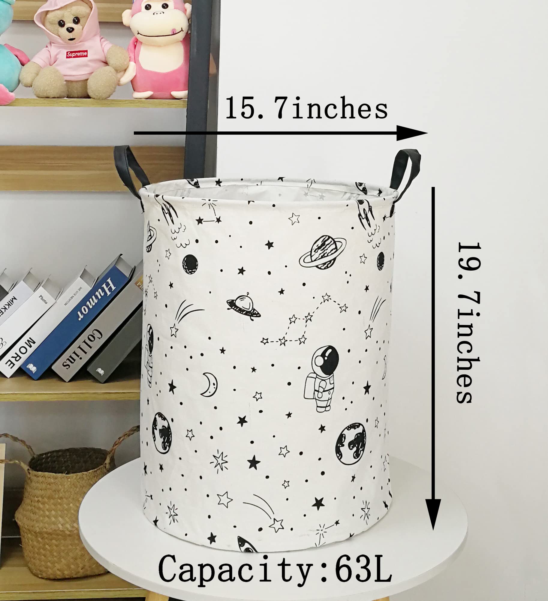 MATERIAL: 70% polyester, 30% cotton, PE waterproof coating Lining SIZE: 19.7 in (height) x 15.7 in (diameter) EASY TO USE: The laundry hamper adopted collapsible design, equipped with handles . It is lightweight and portable for using, storing, and moving conveniently. Multi-functional: clothes hamper is suitable to store dirty clothes washing, place in the kid's' room to store toys, books and other household goods, keep the house clean and tidy. Perfect laundry hamper for baby girls nursery, home, office, closet organizer, bedroom, bathroom, college dorm, etc. NOTE: The laundry hamper comes with compression packing which may result in crumpled in long-distance transit. It will recover after a period of time and also can be smoothed out by steam iron and hairdryer.