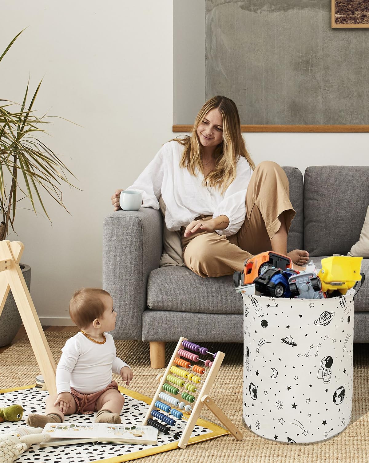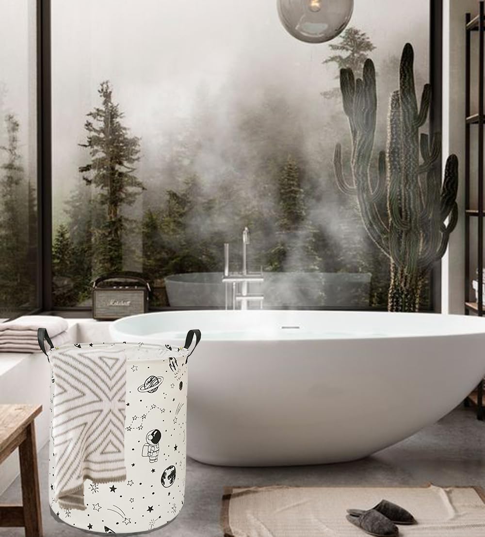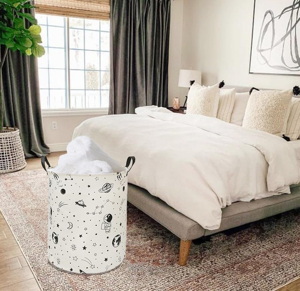 MATERIAL: 70% polyester, 30% cotton, PE waterproof coating Lining SIZE: 19.7 in (height) x 15.7 in (diameter) EASY TO USE: The laundry hamper adopted collapsible design, equipped with handles . It is lightweight and portable for using, storing, and moving conveniently. Multi-functional: clothes hamper is suitable to store dirty clothes washing, place in the kid's' room to store toys, books and other household goods, keep the house clean and tidy. Perfect laundry hamper for baby girls nursery, home, office, closet organizer, bedroom, bathroom, college dorm, etc. NOTE: The laundry hamper comes with compression packing which may result in crumpled in long-distance transit. It will recover after a period of time and also can be smoothed out by steam iron and hairdryer.