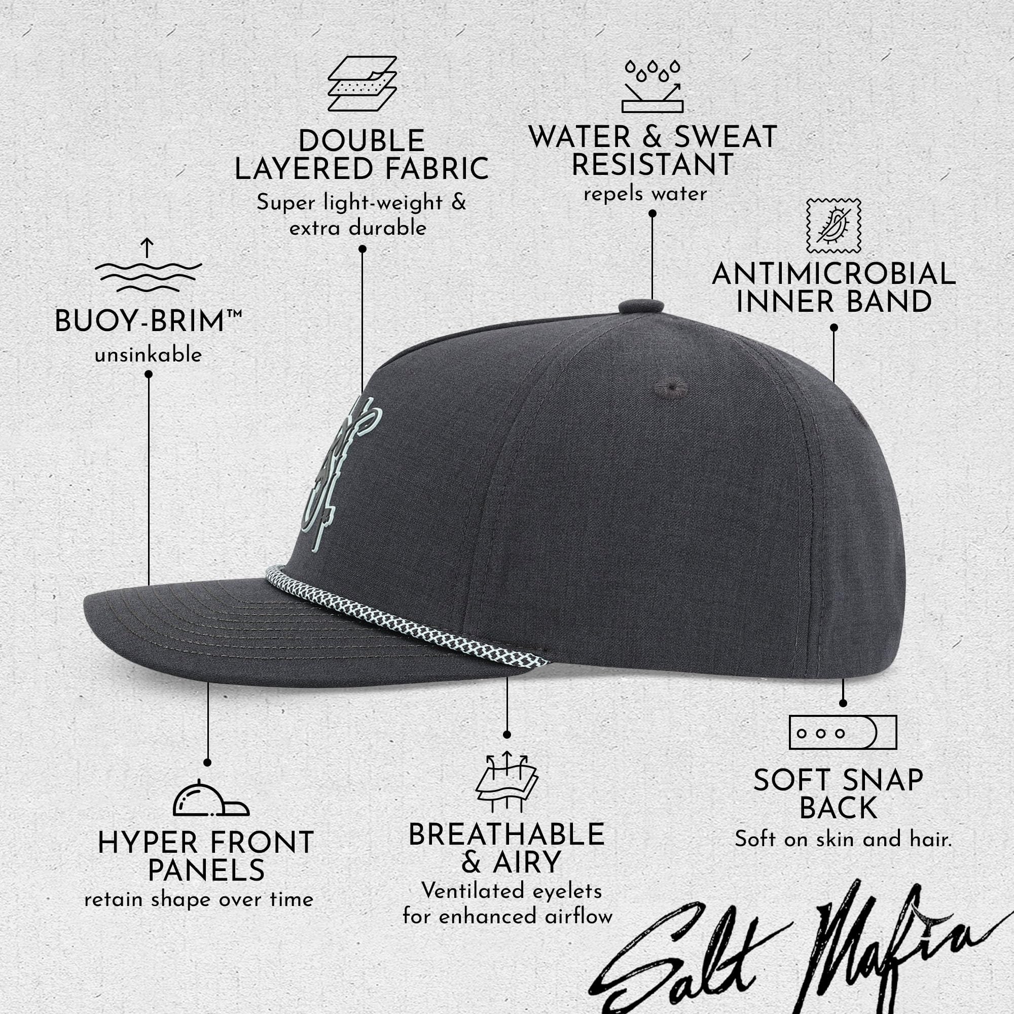 DURABLE AND SUSTAINABLE DESIGN: Made from quality recycled materials, our waterproof mens hat is built to last through every adventure. If you're looking for mens waterproof baseball caps or a water-proof hat for men that aligns with your values, our Salt Mafia hats for men is the responsible choice. Combining performance with longevity, it's great for outdoor enthusiasts who value durability and functionality.