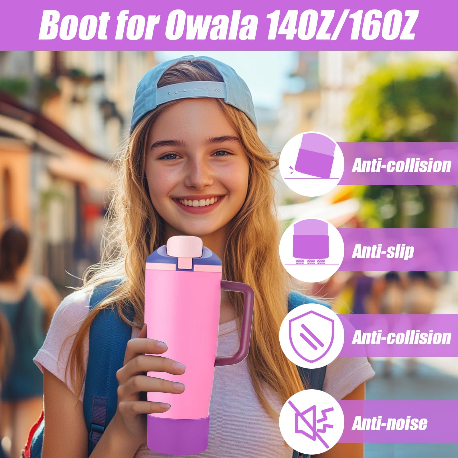 Non-Slip Base for Stability: The non-slip base of this silicone boot keeps your bottle for owala stable on any surface. It prevents tipping and spills, ensuring your bottle stays secure whether you're at home, work, or outdoors