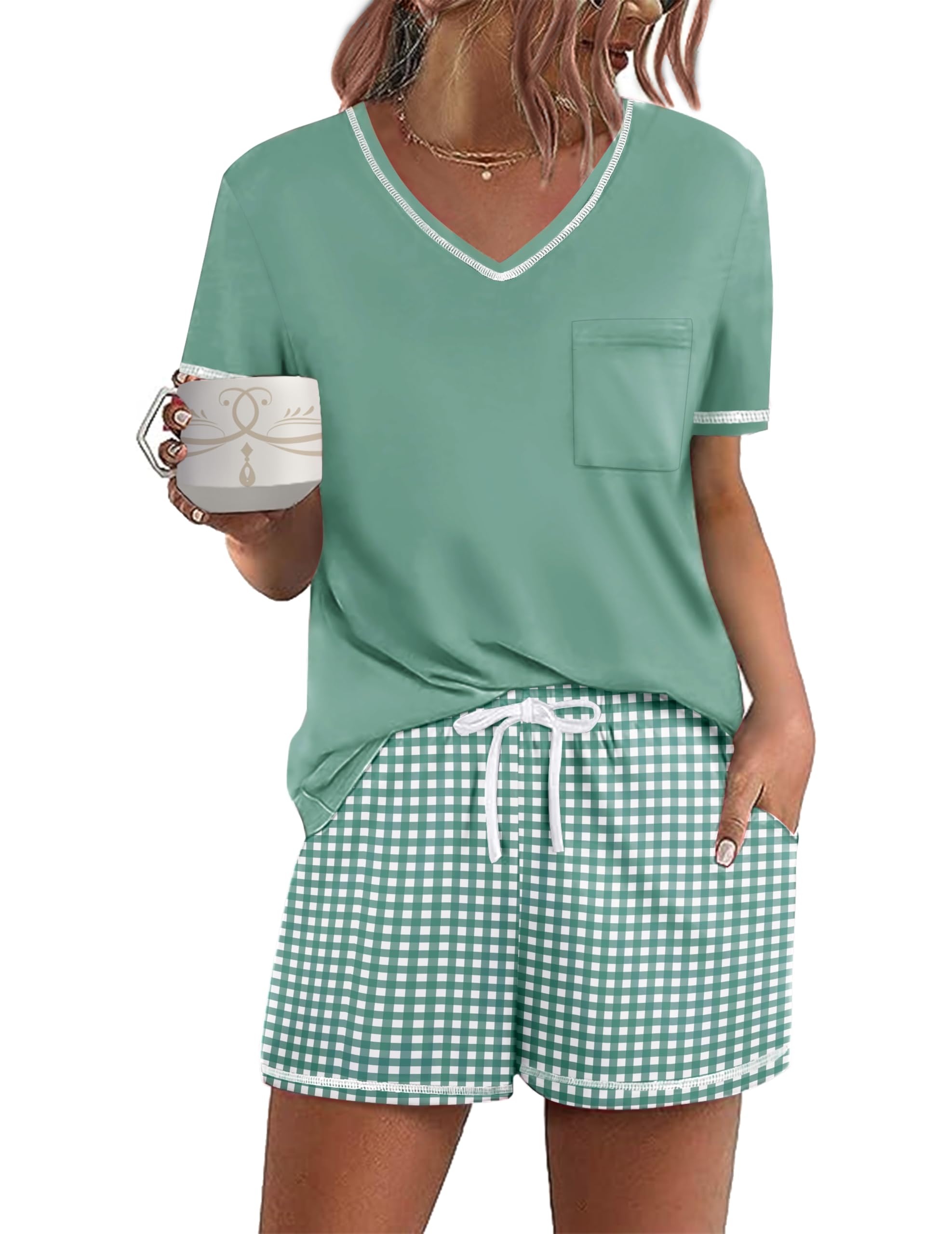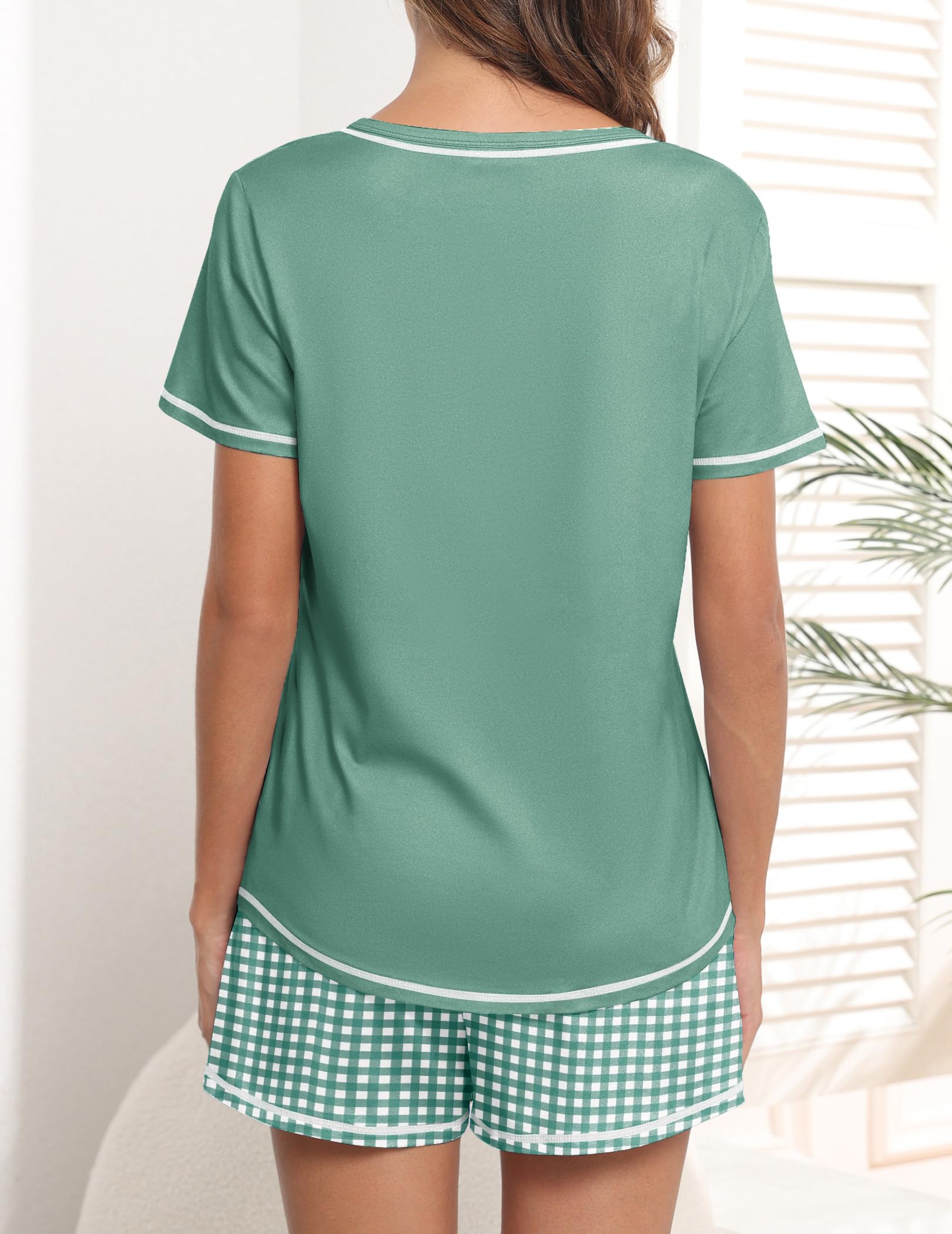 Design: The pajama top features classic chest pocket and V neck, with exquisite hemming workmanship; the pajama shorts features adjustable drawstring and pockets. Loose fit lounge sets, cute and comfy pajamas for women and teens girls