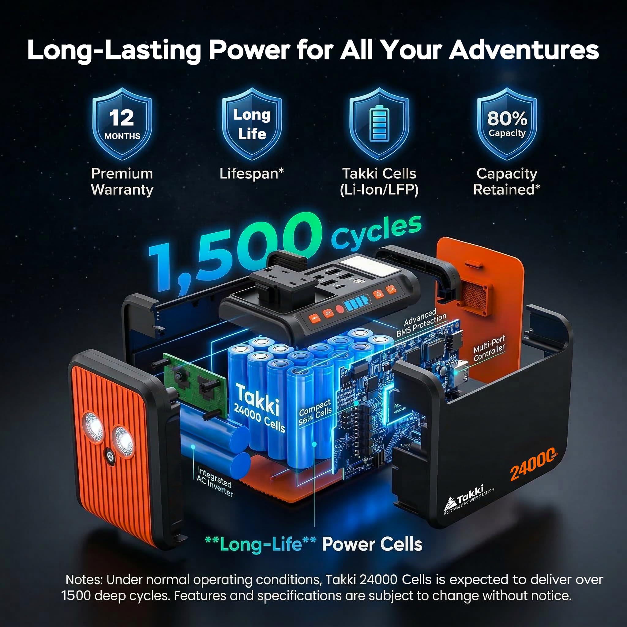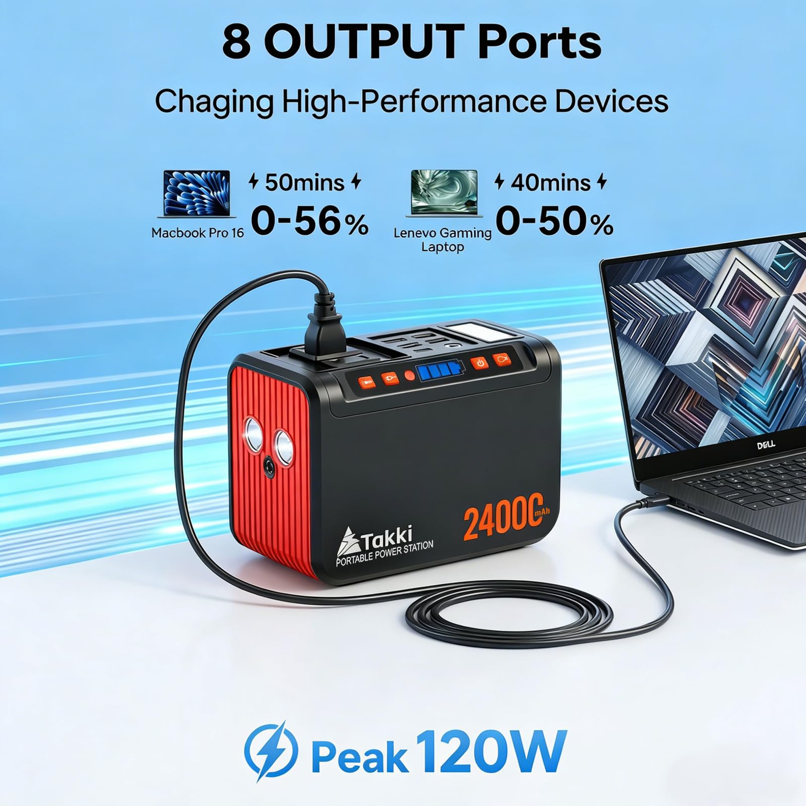 8 UNIVERSAL CHARGING PORTS: Power all devices with 2x AC outlets (110V/80W,120W Max), 2x USB ports (18W QC3.0), 2x USB ports (5V/2.4A), 1x USB-C port (18W PD) and 1x 12V DC port. Supports laptops, phones, drones, LED lights, mini-fridges, and more. Charge smartphones 4+ times or laptops 1-2 times effortlessly
