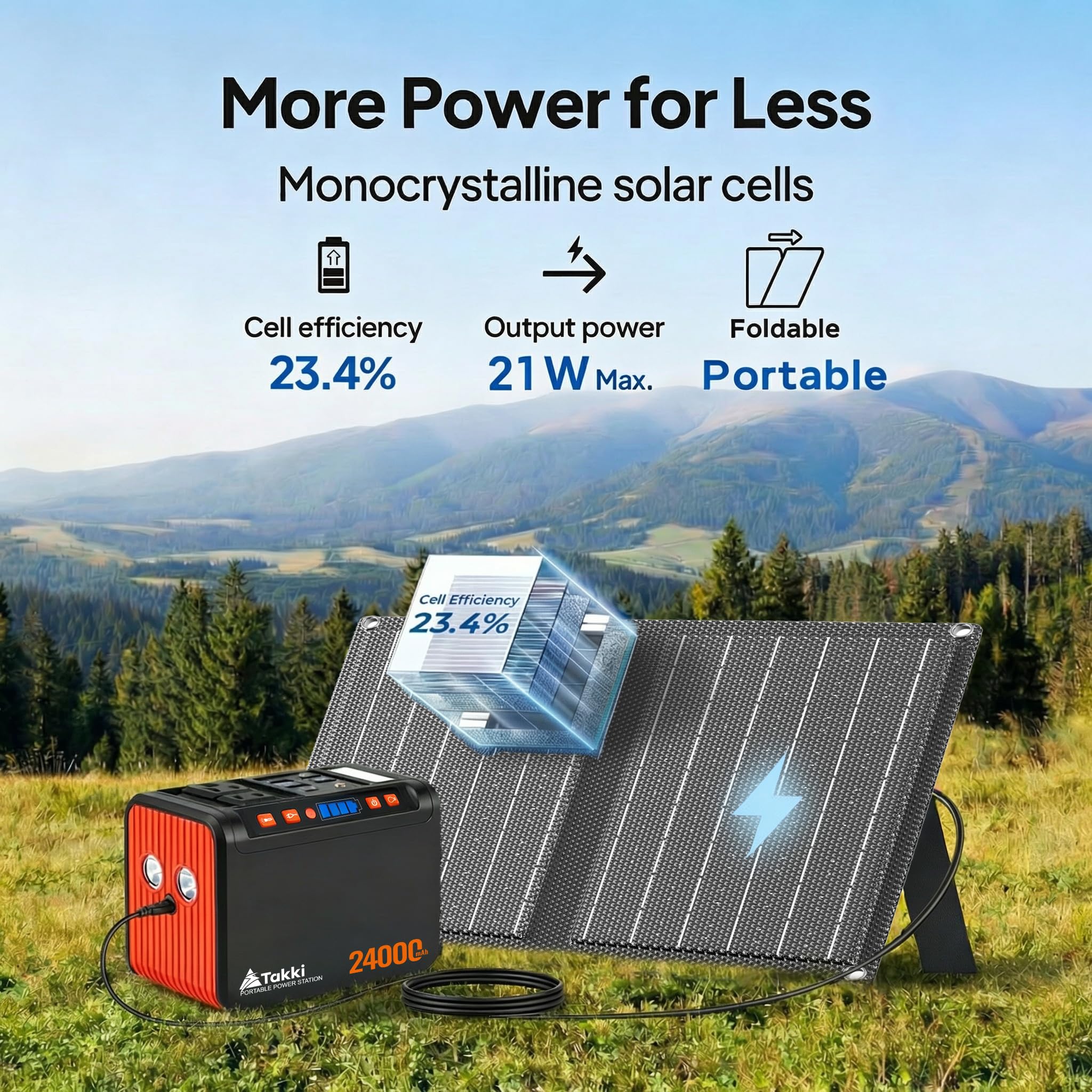 SOLAR GENERATOR WITH PANELS INCLUDED: Weighing only 2.29 lbs, this 88.8Wh power station fits in your backpack, the power station can charge from 0% to 80% in 2 hours with the AC charger included. Comes with a foldable 21W high-efficiency solar panel. Harness sunlight to recharge in 5-7 hours upto 80%. Ideal for camping, hiking, outdoor adventures, road trips, school, office or home use