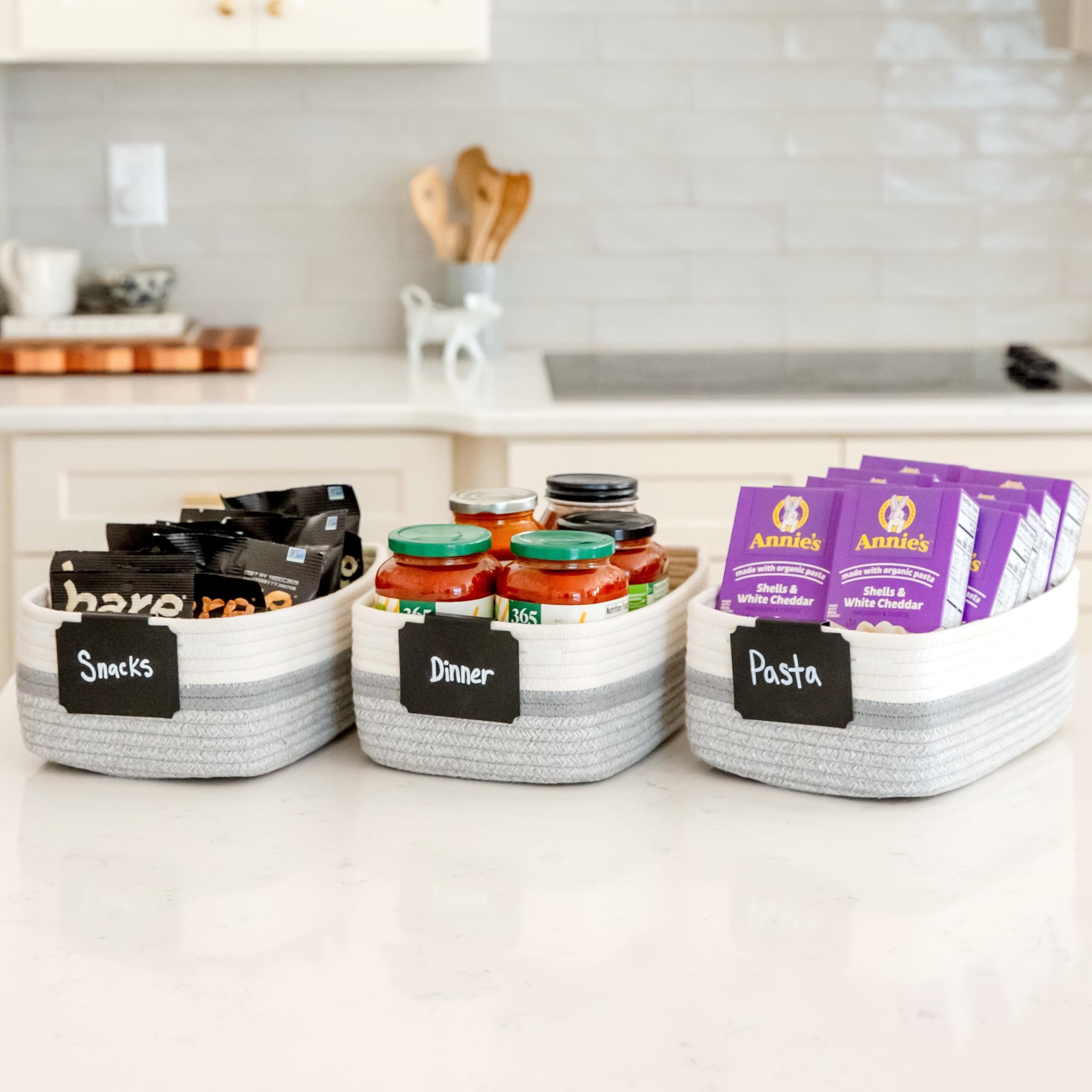 Safe, Natural Cotton Organizer Bins: Crafted from the highest quality material in the market, our storage bins are oh-so-sturdy (and cute) and ready to take on little humans. They’re 100% safe, so you can rest easy if teething toddlers take a nibble. Reinforced Hidden Handles: Now you see ‘em, now you don’t! With completely hidden handles that blend seamlessly into the rope basket, you’ll be the Houdini of home organizing. They’re even double-stitched and reinforced for extra heavy loads!