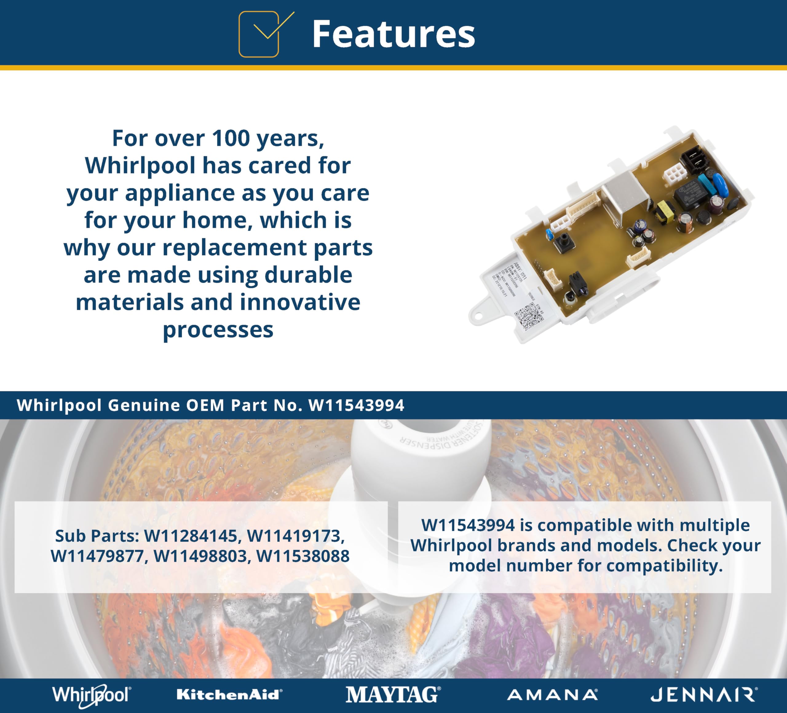 COMPATIBLE APPLIANCES: W11543994 is compatible with many Whirlpool and Maytag Models