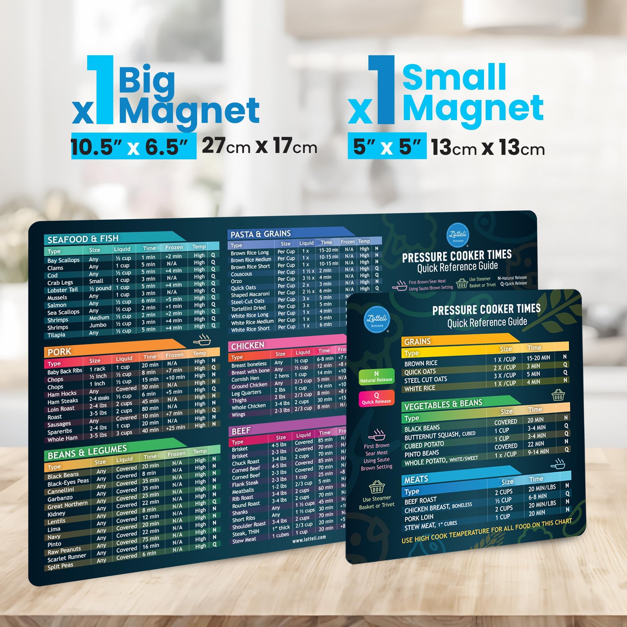 Strong Magnetic Backing – The durable magnet sticks securely to your refrigerator or any magnetic surface so your cooking times chart is always within reach while preparing meals.