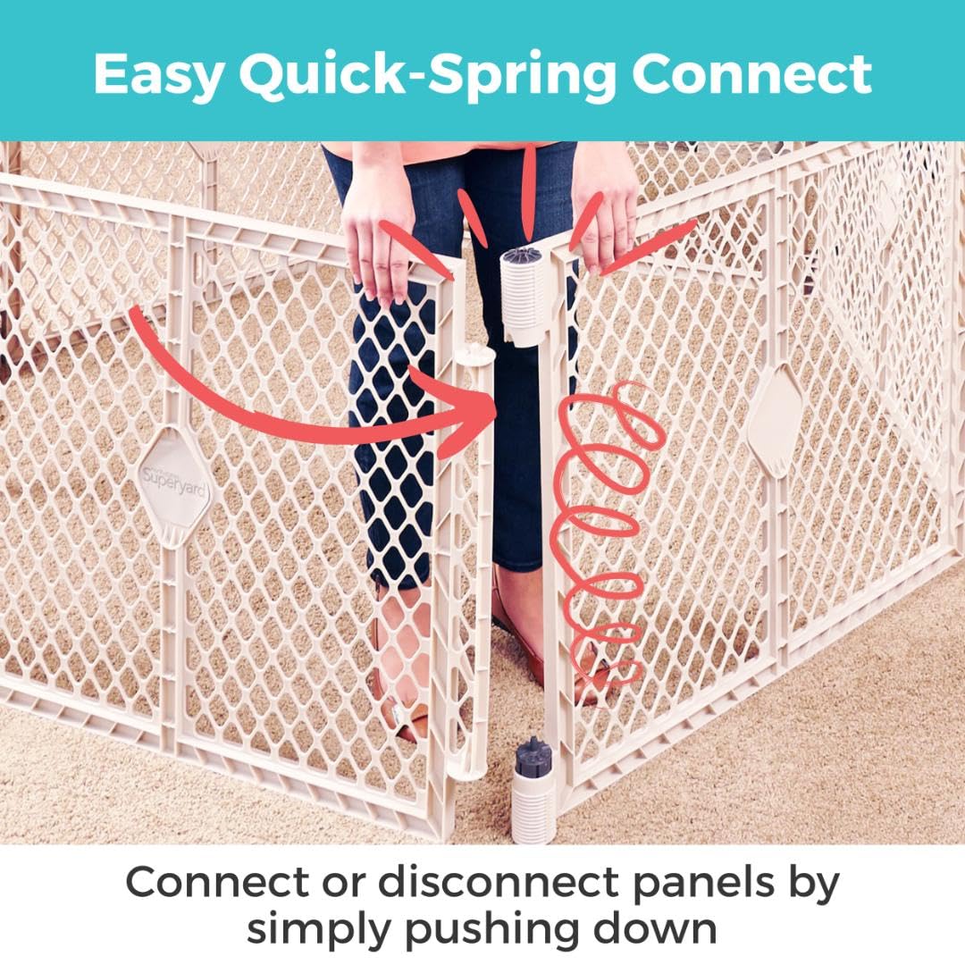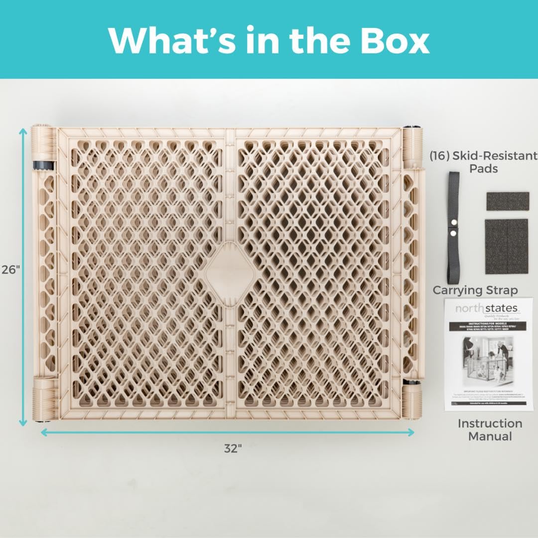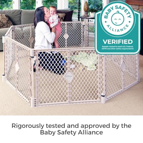 About the Superyard Baby Play Yard: Large spaces make it even tougher to keep tabs on your child! Ensure he or she is safe and secure with our baby playpen designed for indoor or outdoor use. The UV-resistant design keeps colors vibrant and ensures long-lasting durability. The 8-panel play yard encloses up to 34.4 sq. ft. and is 26 in. tall. The 8 pre-connected panels come ready to go, simply unfold and connect the ends together. Our portable baby fence folds quickly and includes a carry strap for easy transport. This baby barrier features SuperGrip feet and skid-resistant pads to prevent movement and protect hardwood floors. The plastic play pen has self-locking hinges that only bend in one direction. The clicking noise ensures the hinges are locked. Using a maximum of 6 panels, the play yard can act as an extra-wide baby gate with the Superyard Wall Mount Kit (sold separately). Every Toddleroo by North States play yard is JPMA and ASTM certified. Our plastic gates and plastic play yards are made of non-toxic polypropylene and pigments that contain no heavy metals (no lead), no Phthalates or PVCs, and are BPA free. Proudly made in the USA. About Toddleroo by North States: We pride ourselves on U.S. manufacturing because it allows us to maintain the highest standard of quality control. Since 1953, our products have been built by skilled craftsmen and women who are dedicated to making the finest products in America. Our innovative, superior-quality products are designed to achieve the highest standards in safety, durability, and ease of use. You’ll always find us ahead of the curve and on the cutting edge of the industry.