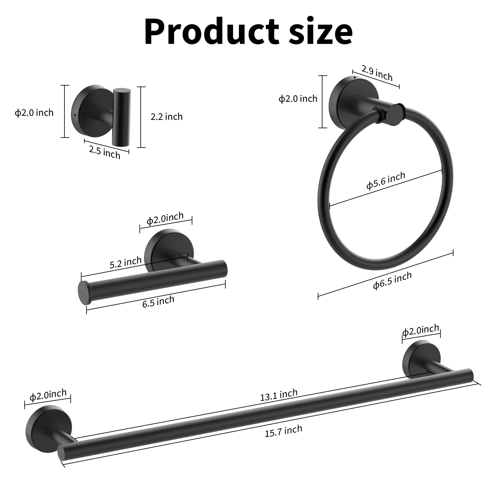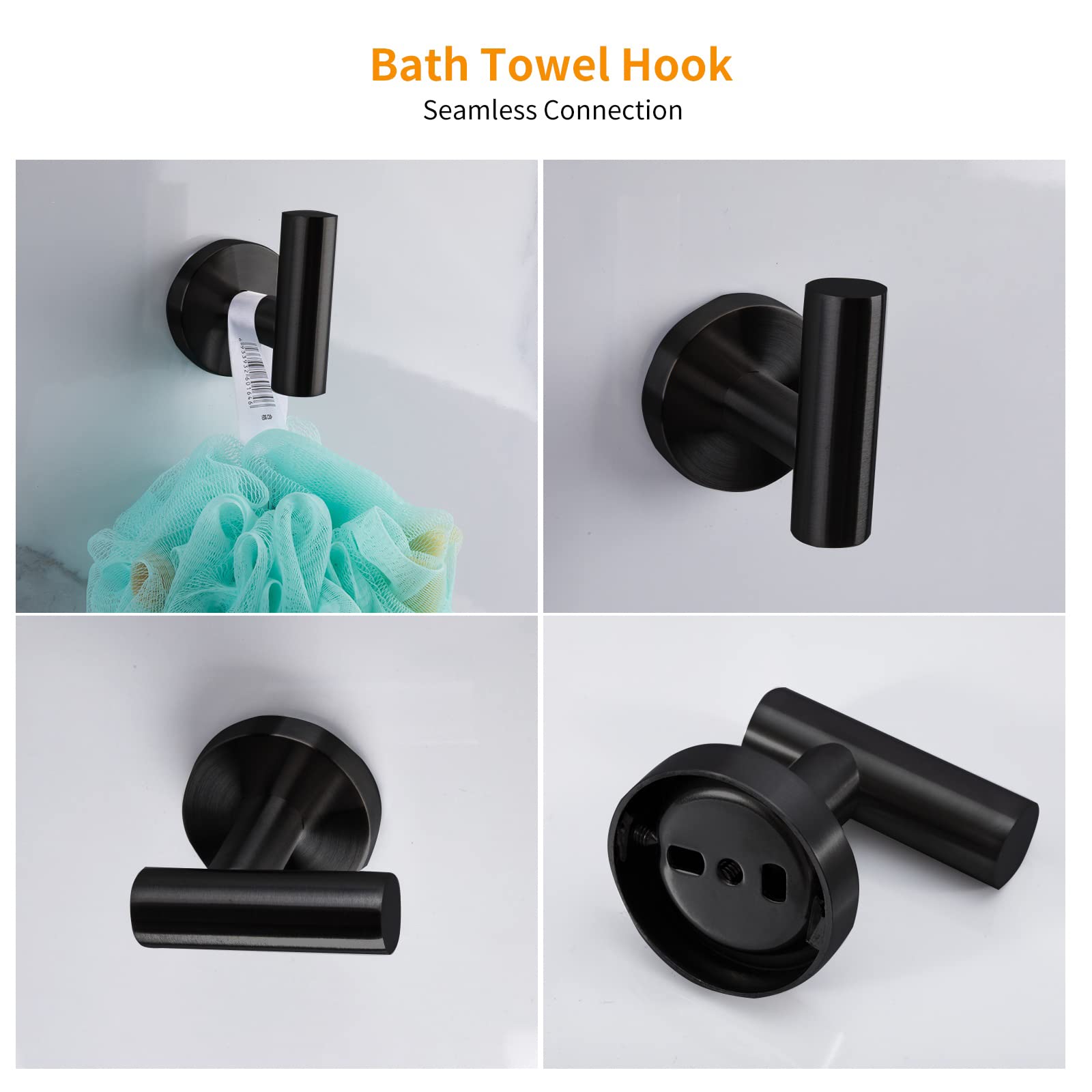 【10-PIECES BATHROOM ACCESSORIES KIT】--The matte black bathroom set includes 16 inch towel holder, towel bar set , Towel Ring, toilet paper holder and Robe Hook. The same price can get more value bathroom towel rack set and has everything you need for your bathroom.