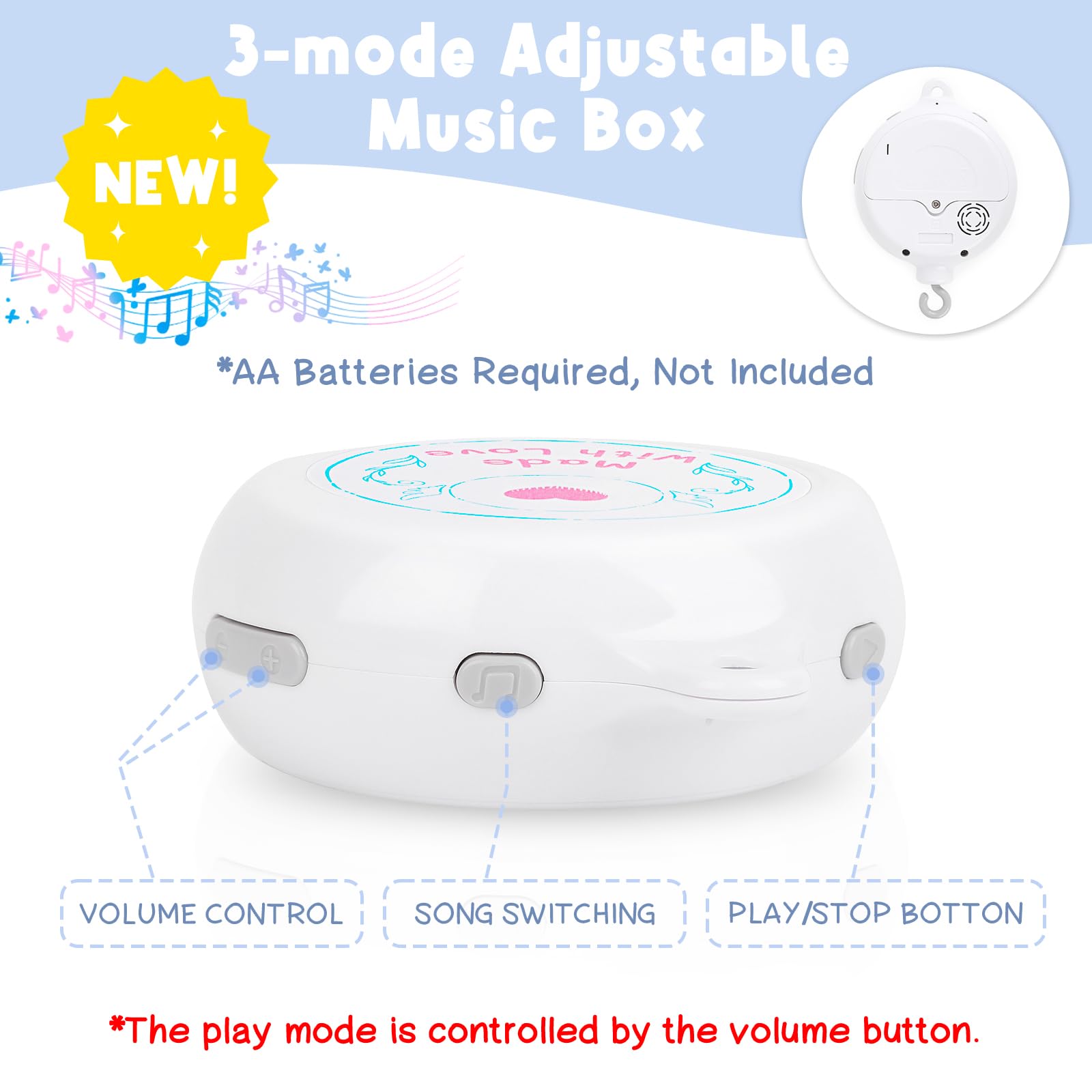 12 Soothing Lullabies: The upgraded 3-mode music box lets you choose rotation, music, or both. Soft melodies and gentle spinning create a calming bedtime routine for baby and parents alike