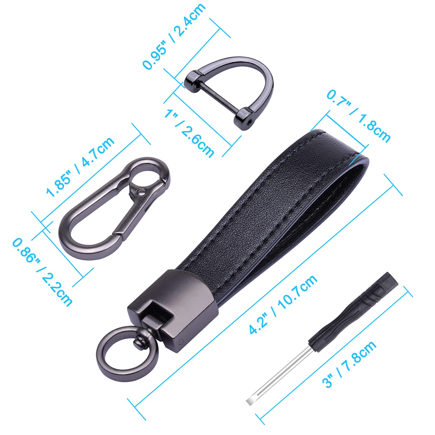 Description Wisdompro Car Keychain is made of high quality Cowhide Leather, zinc alloy quick release carabiner clip and keyrings, which is durable to use in a long term. With 1 screwdriver and 3 keyrings, it is easy to install and suitable for men and women to organize your car keys, office keys, home keys, etc. They are elegant and practical, a perfect gift for family, friends and collegues during Father's Day, Christmas, holidays, birthdays, etc. Specification: Total length including clip and keyrings: 5 inches (13 cm) Width of the keychain: 0.7 inches (1.8 cm) Diameter of keyring: 1 inches (2.56 cm) Wisdompro Retail Package Includes 1 x Genuine Leather Keychain 1 x Screwdriver 3 x Keyrings Wisdompro Customer Satisfaction Warranty: If you encounter issues with any Wisdompro product, please do not hesitate to contact us, we will be happy to help you solve it.