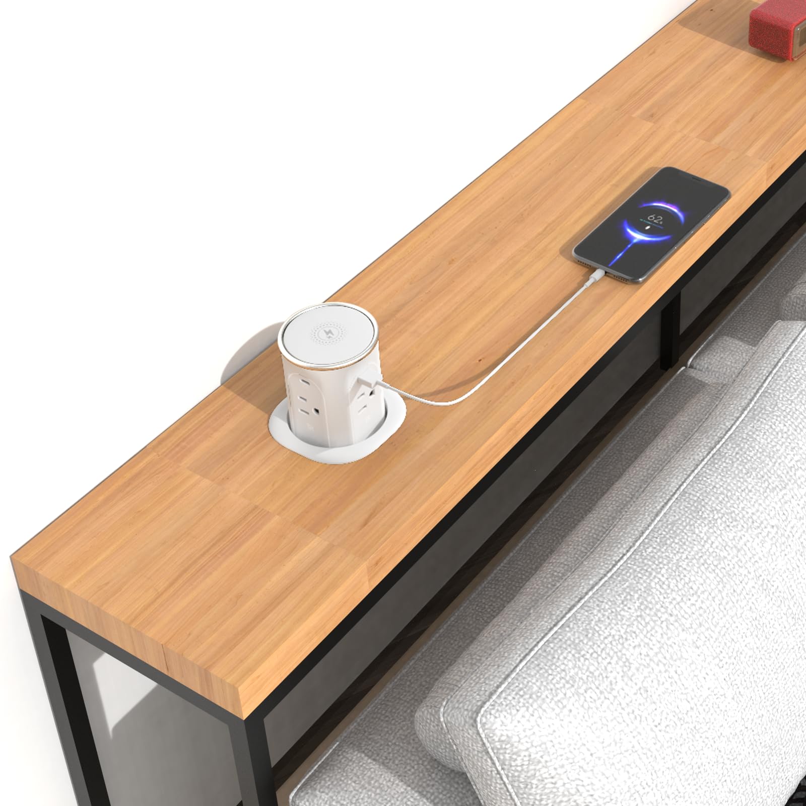 【Automatic Pop Up Electrical Receptacle with Wireless Charger】Max 15W wireless charger panel compatible with all Qi standard devices.when the phone is fully charged, it automatically switches to trickle mode, preventing overcharging and taking care of the battery's health. Just a simple press to pop the pop up outlet up and down. Get rid of messy cables.