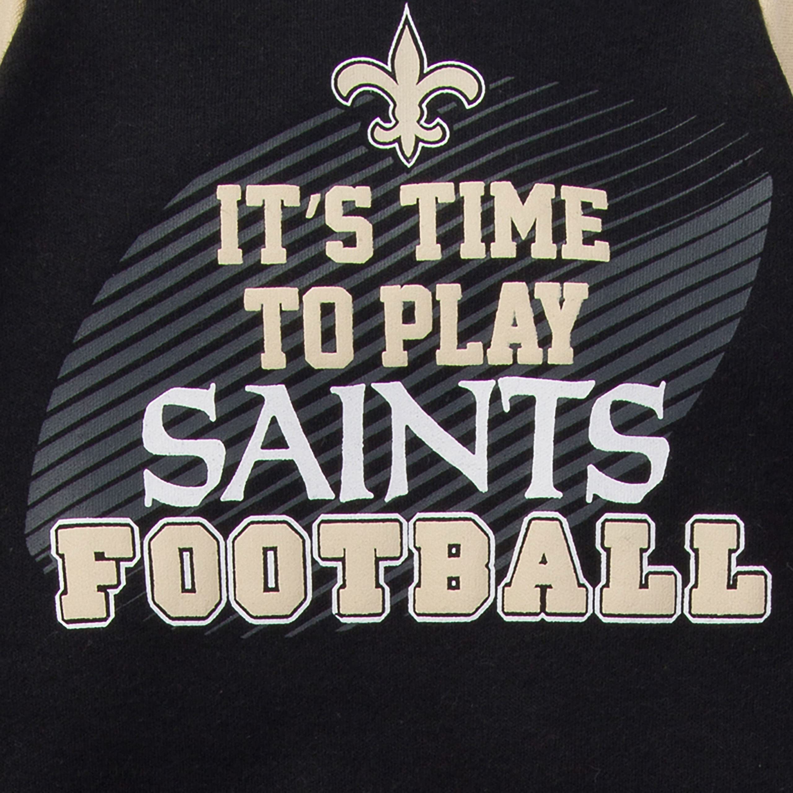Description From the coin toss to the final seconds of the game, this baby Boys' sleep N' play keeps him in the middle of all of the excitement Screen print with puff details puts the logo front and center. The soft, cozy cotton blend interlock and rib fabrics provide a comfy fit that keeps him feeling good whether he's getting some pregame shuteye or romping around during halftime. Easy snaps at the back and inside the legs makes it easy for quick changes Machine wash and dry fabric makes cleaning up quick and simple. This outfit makes for a perfect game day outfit, gender reveal, baby shower gift or Halloween costume