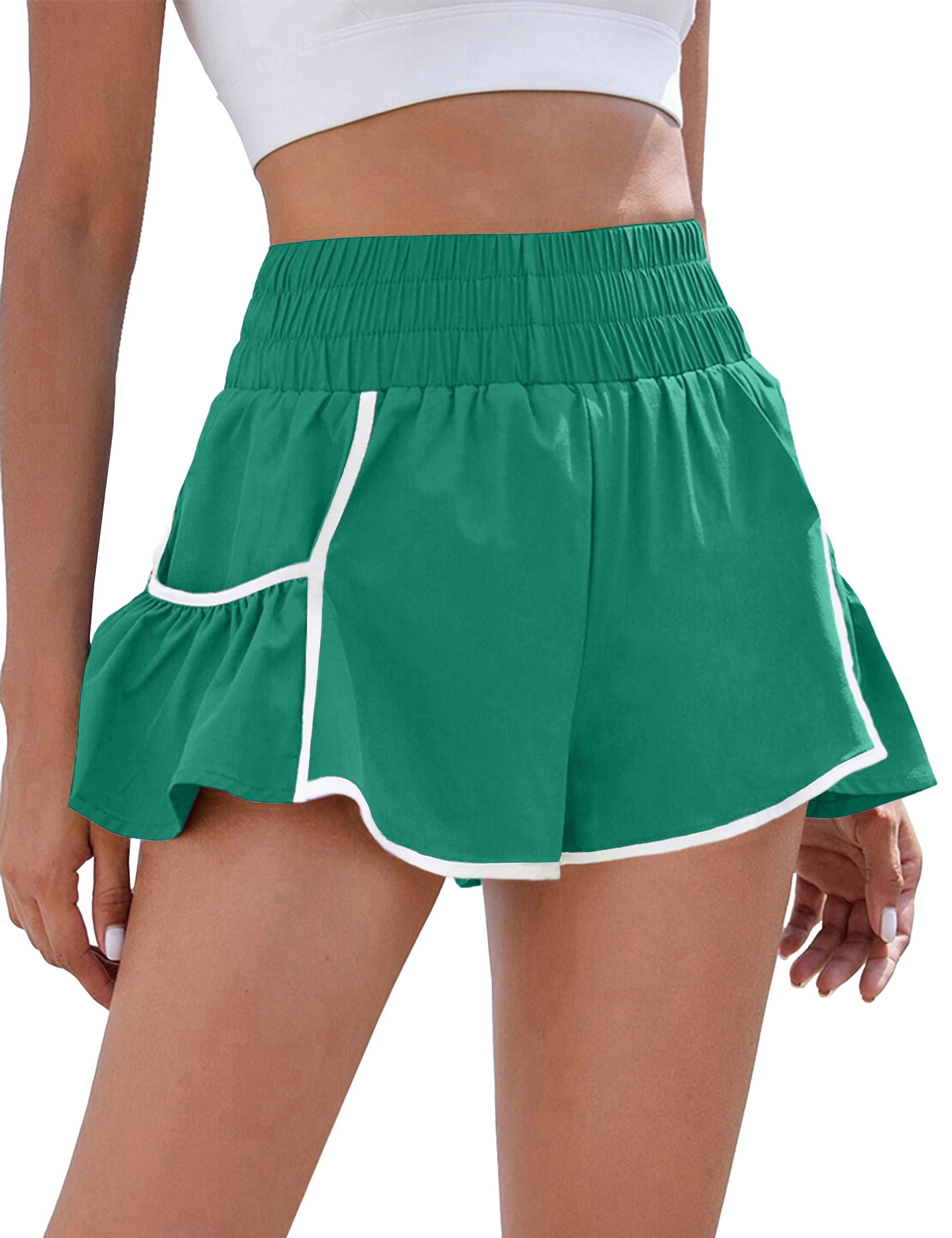 【Design】This gym shorts is featured with Super High Waist, Cute Side Pockets, Loose Fit, Lightweight and Quick Dry Fabric